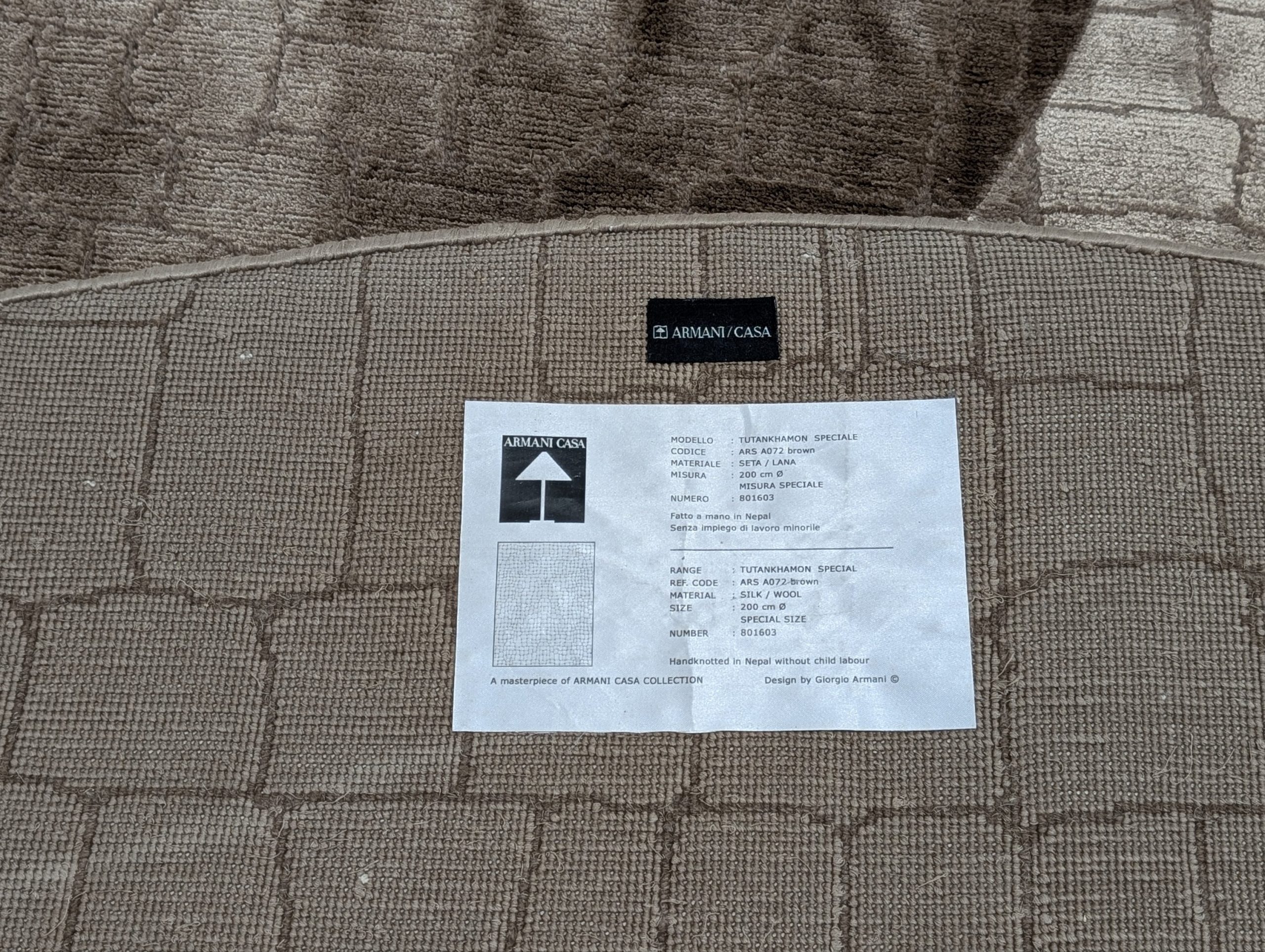 Crafted in Nepal, the rug is hand‑knotted with a high-density weave of 90% silk and 10% wool, delivering a sumptuous, soft texture with a silky sheen and durable structure. This circular shape was special custom.specification.