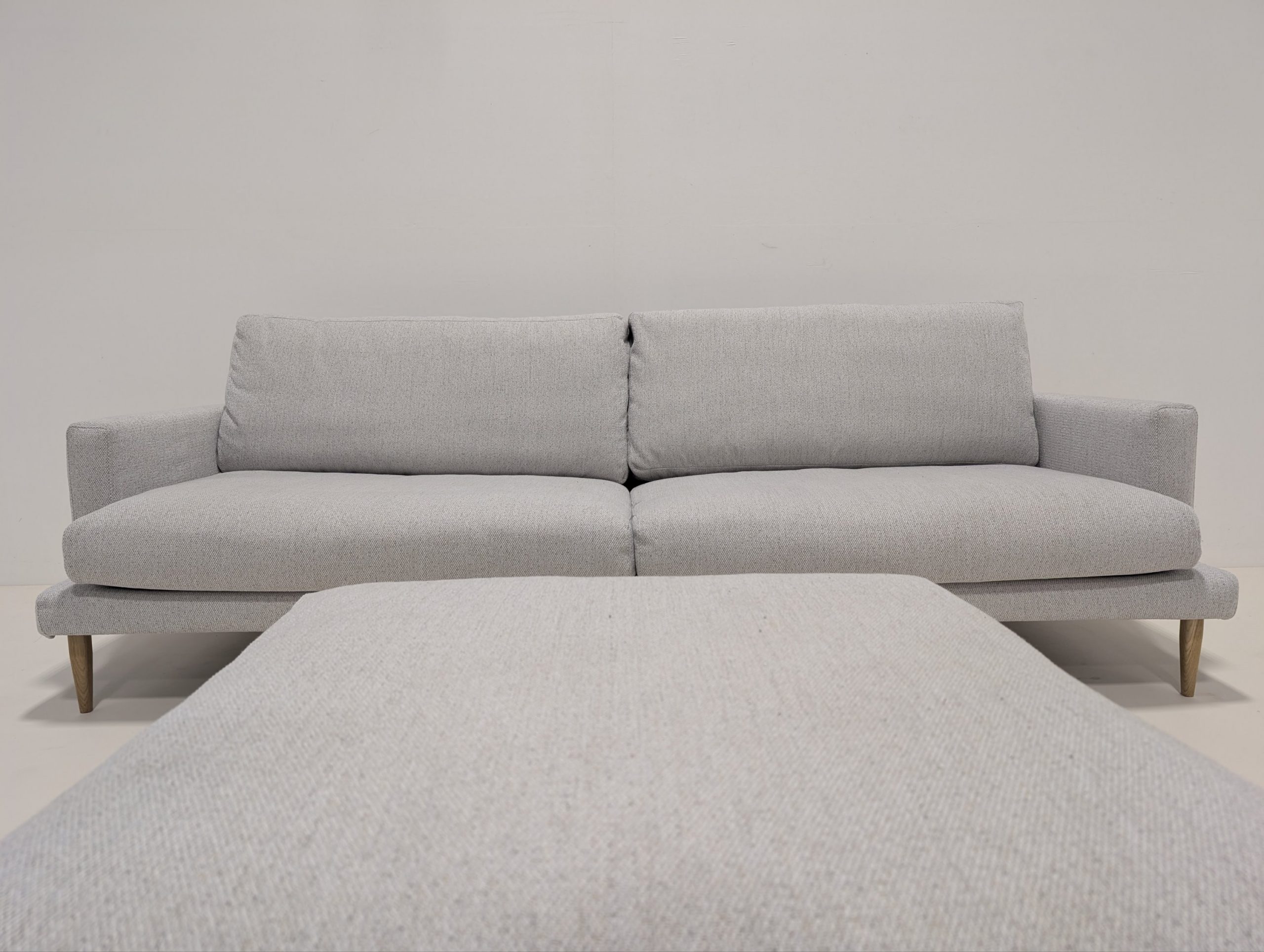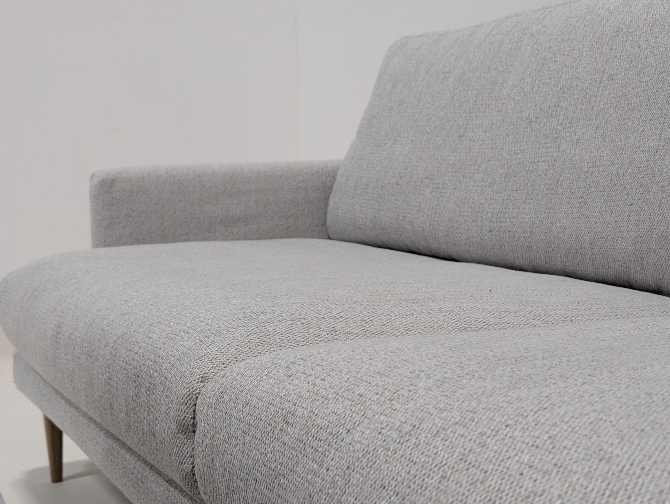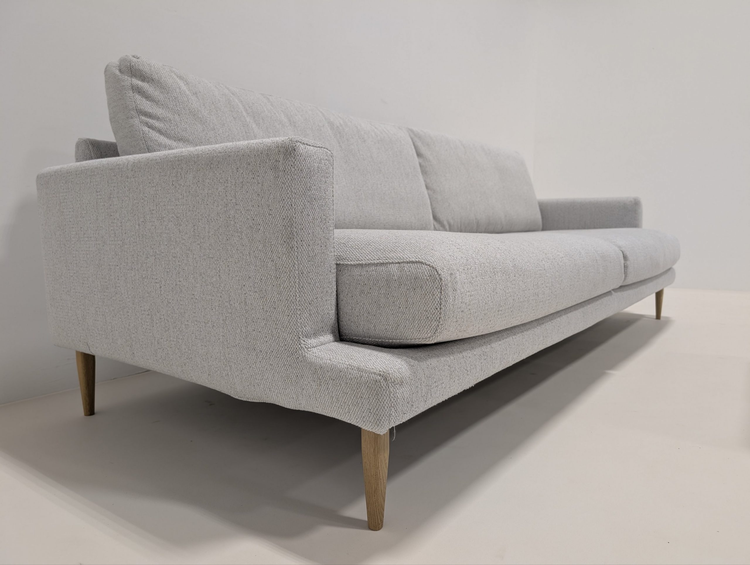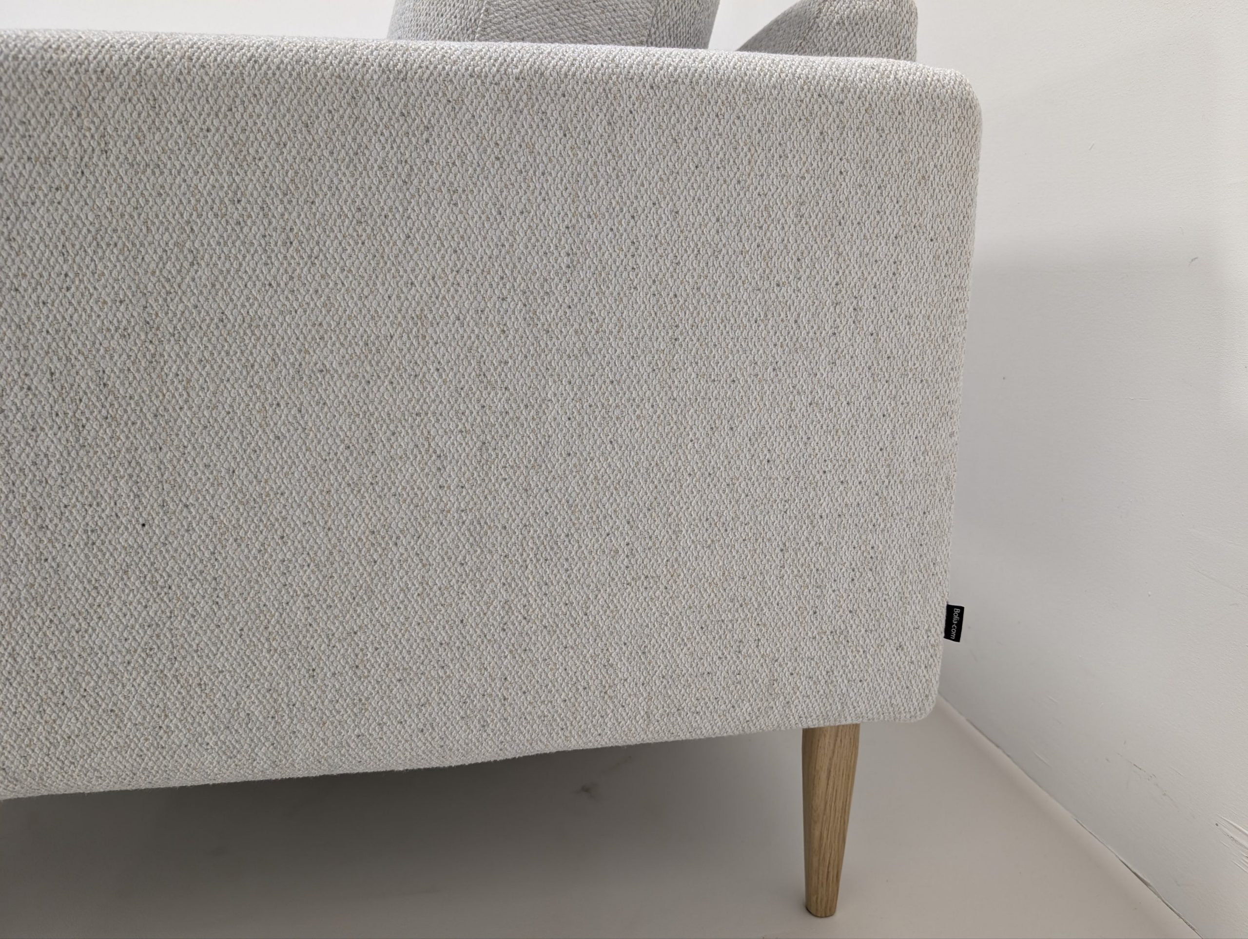 The Veneda is a Danish sofa which combines the essence of English heritage with Nordic modernity, bringing you an undoubtedly timeless design. With a luxurious combination of seventy percent goose down and foam filling, it is incredibly soft and inviting, designed with an elegant expression to surpass fleeting trends and tendencies. Veneda’s fabric cover is completely removable, ensuring a long lifetime and the ability to adapt the sofa to changing needs over time. The solid oak legs can be chosen in three refined finishes to highlight this Danish gem.