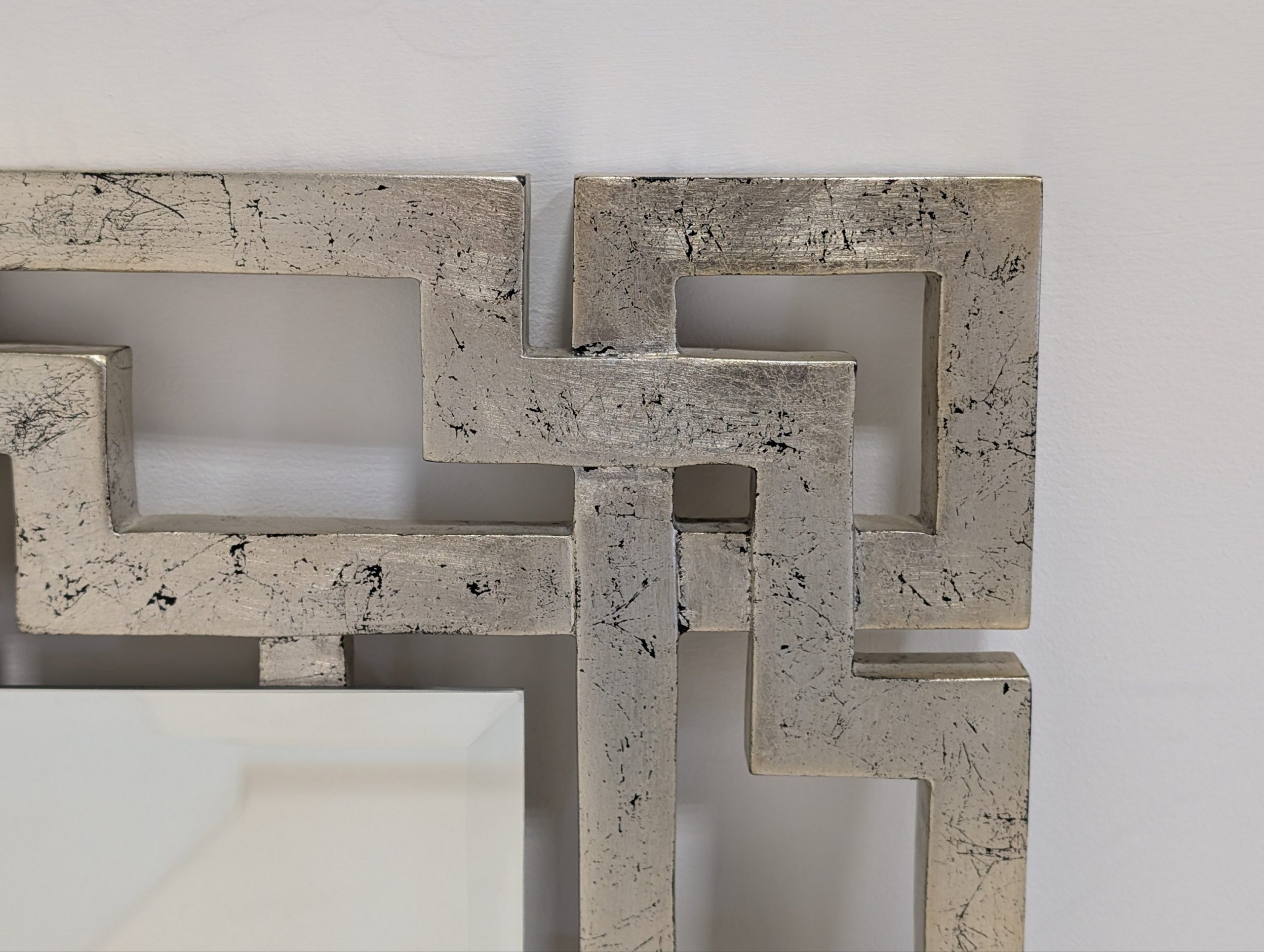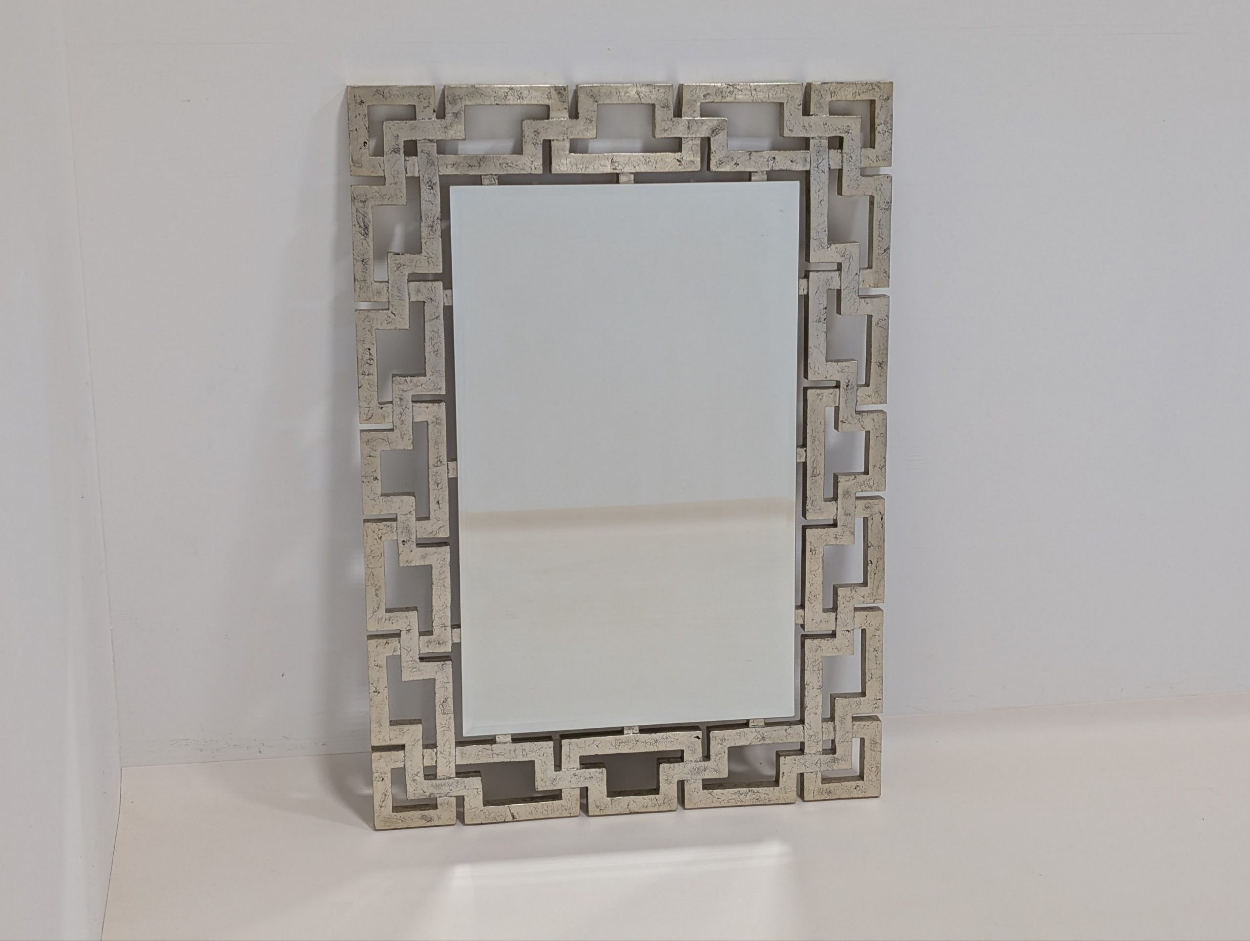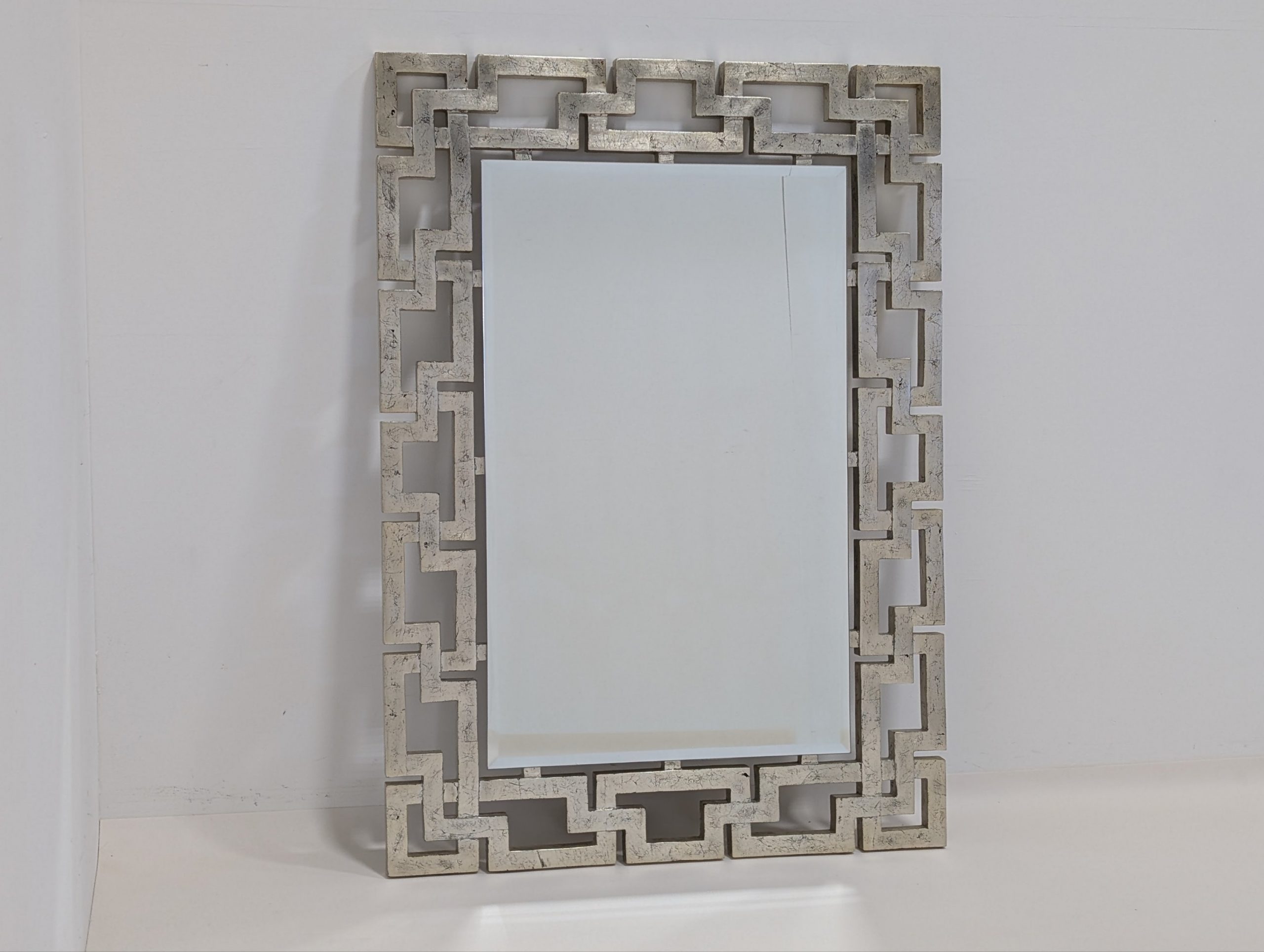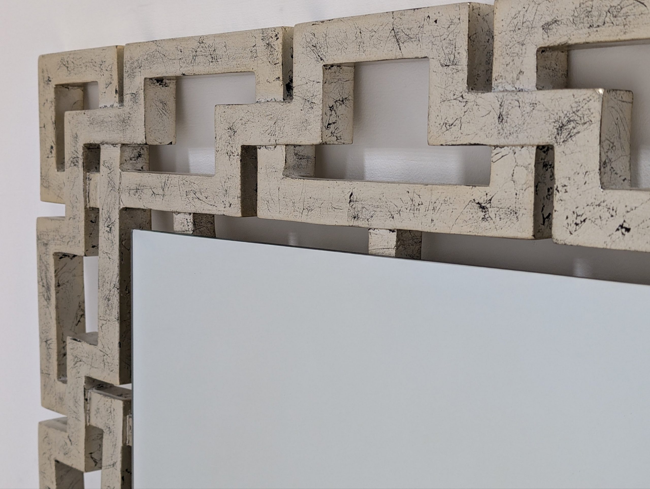 Dramatic stepped key motif hardwood frame, for a striking look in both vertical and horizontal hanging options.