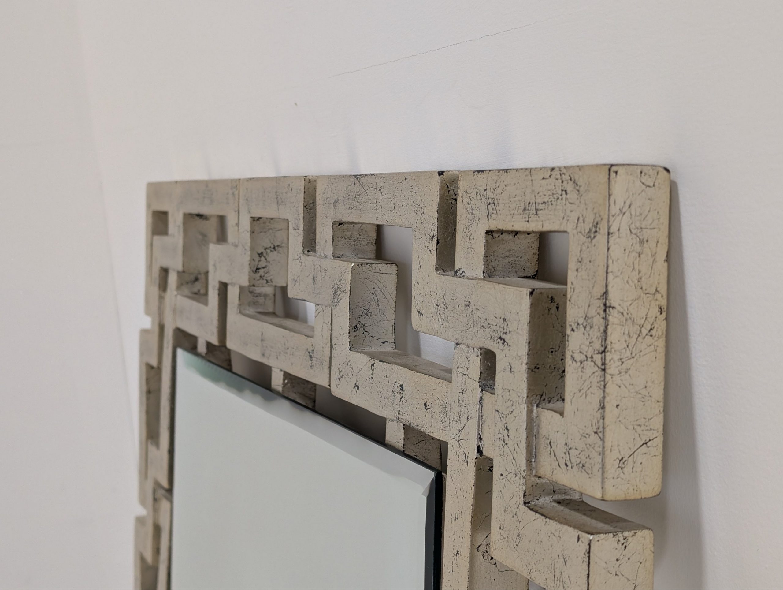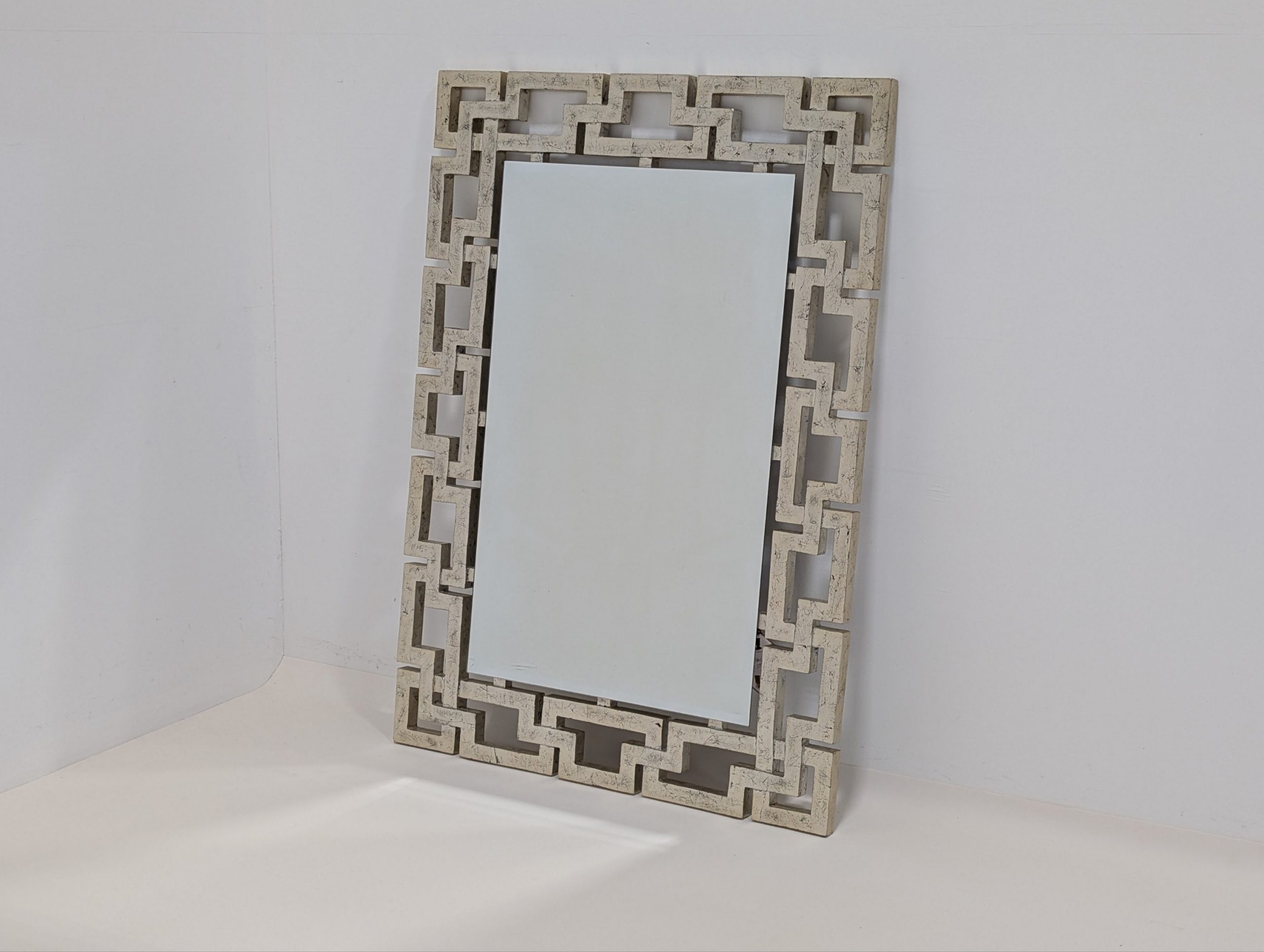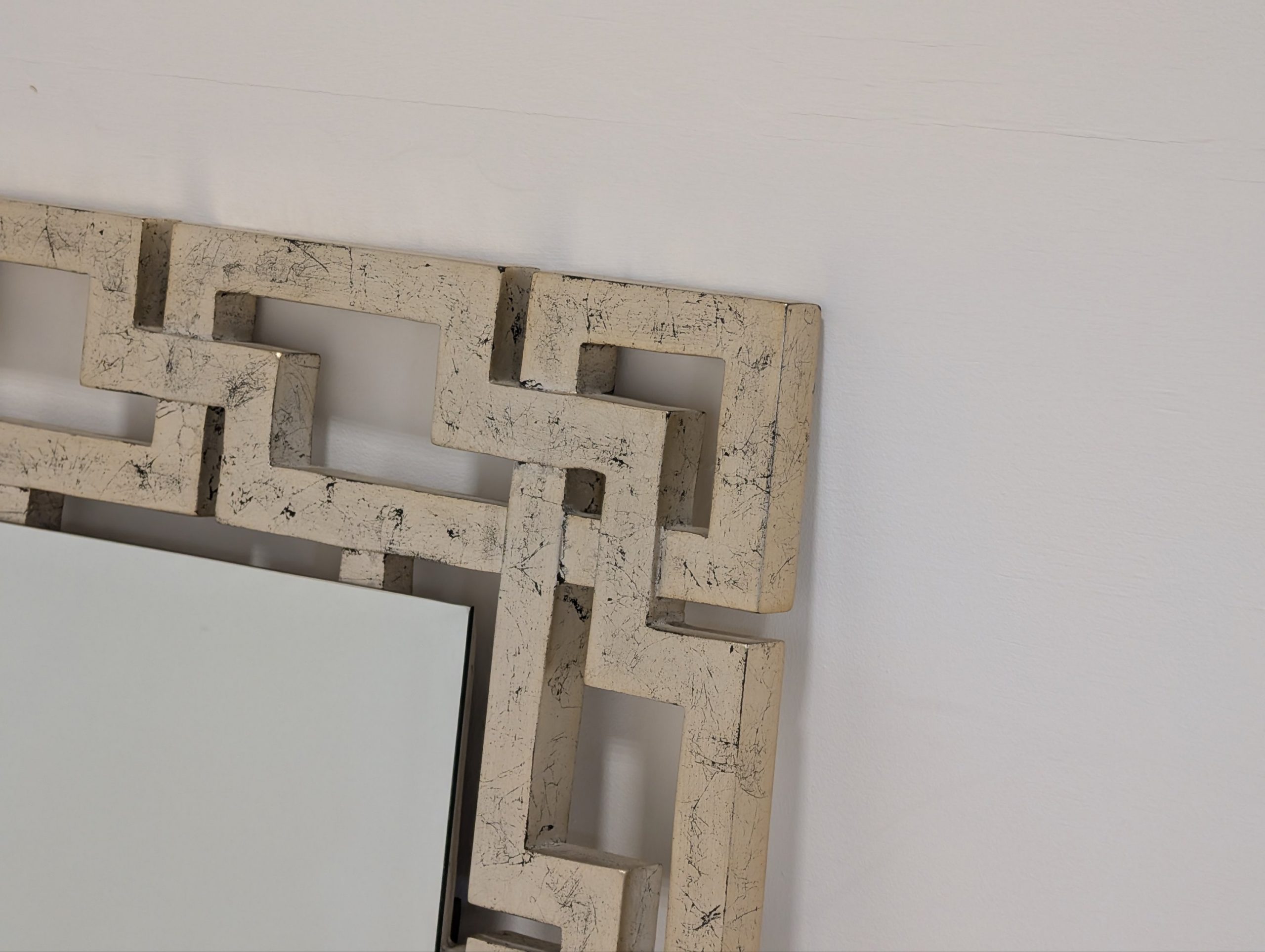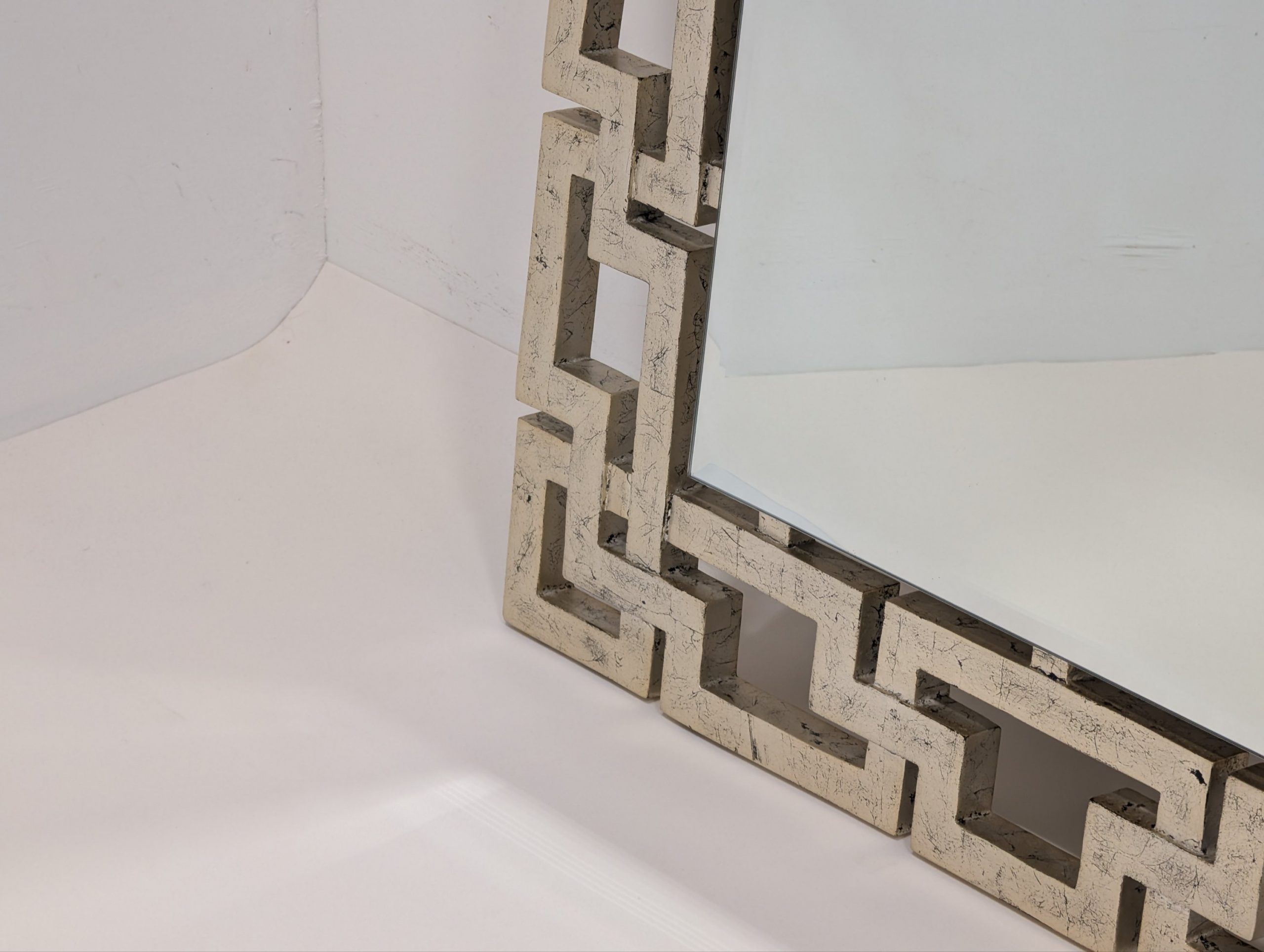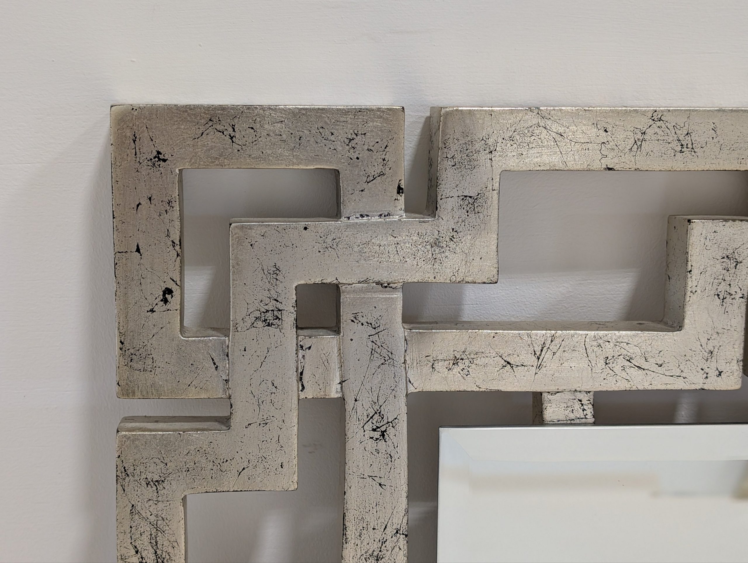 Dramatic stepped key motif hardwood frame, for a striking look in both vertical and horizontal hanging options.