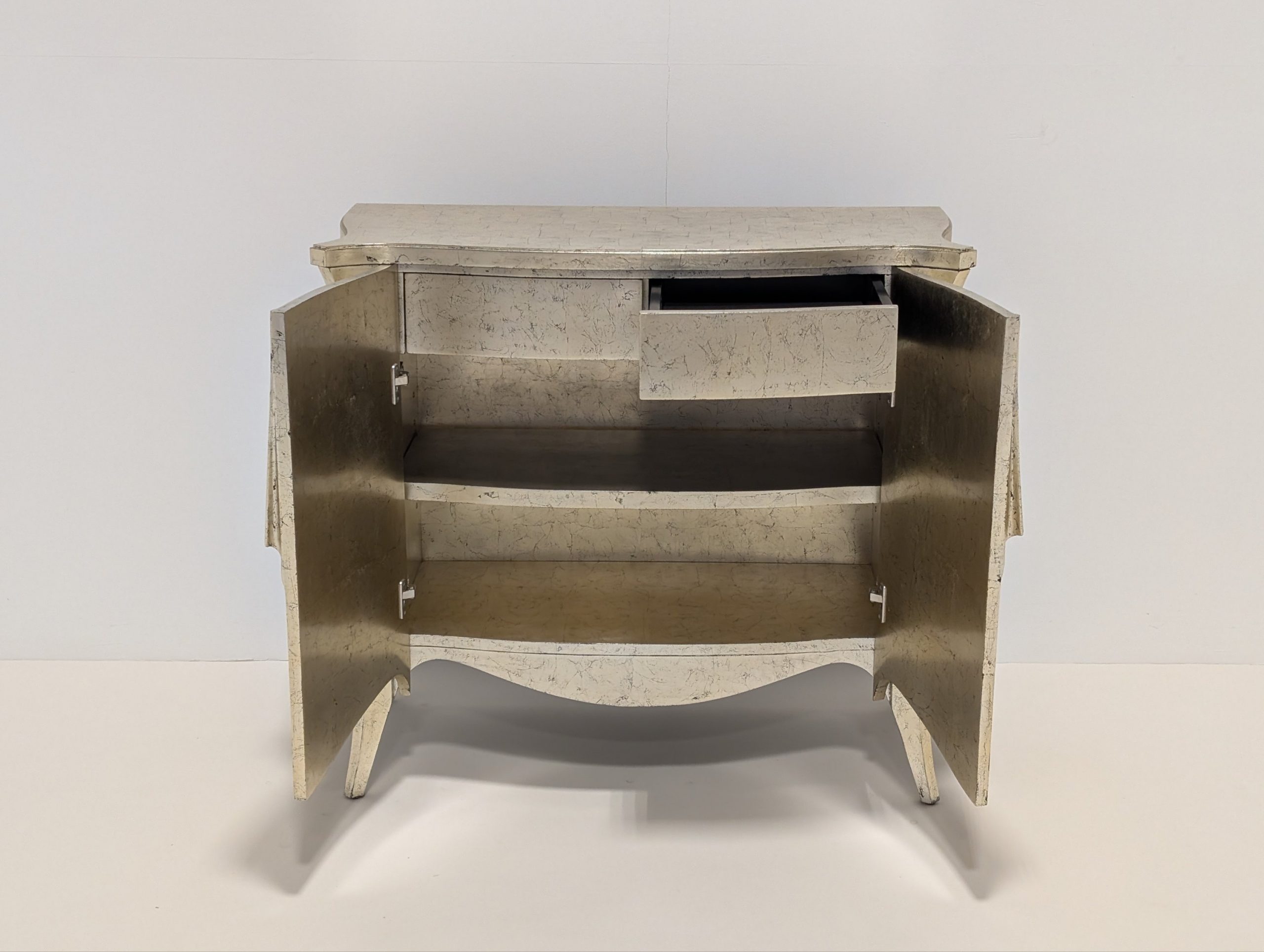 Elegant and curvaceous lines create the soft silhouette of this cabinet, enticing you inside via the carved draped mahogany handles.
