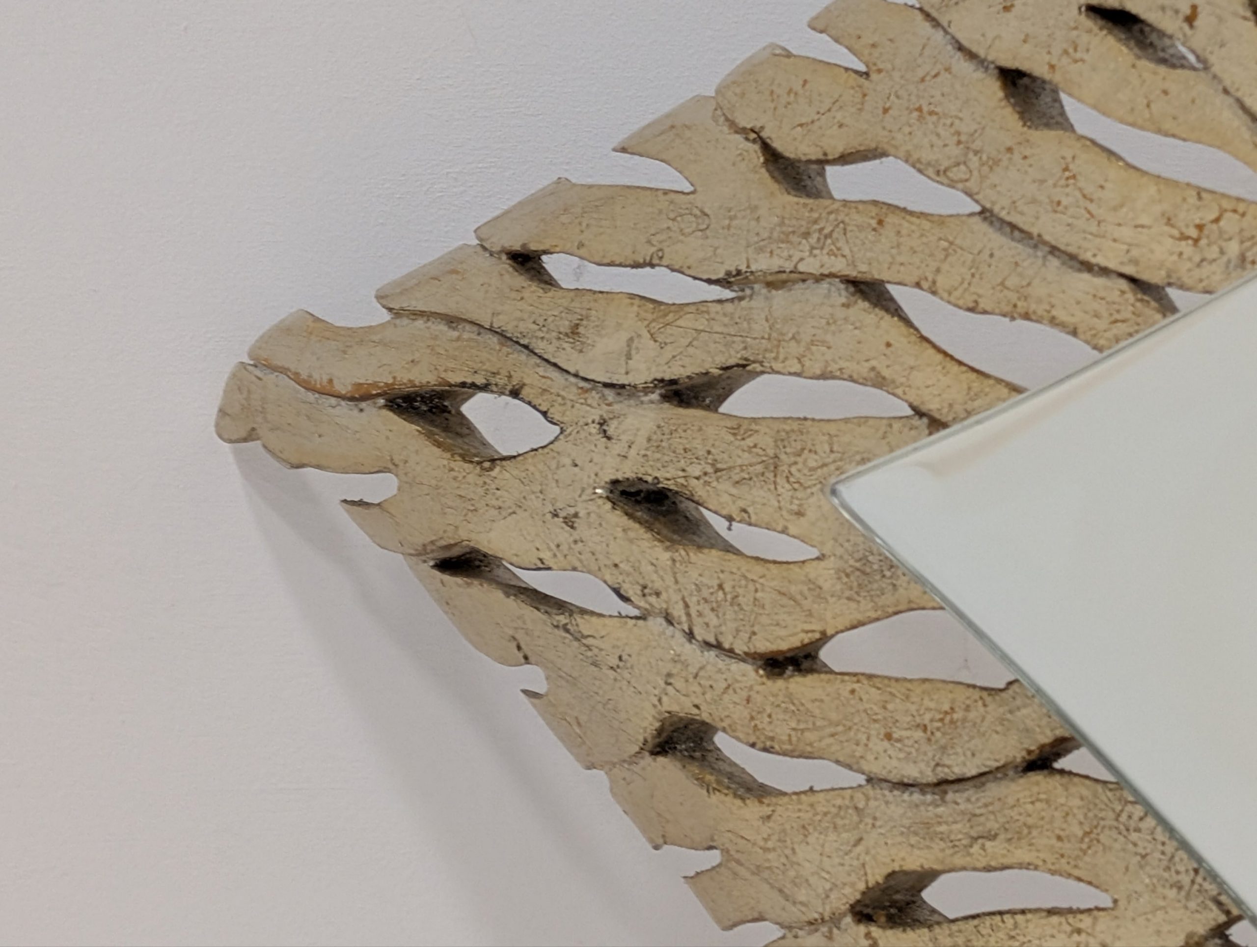An unmistakable Christopher Guy creation, the Balsamine mirror combines sculptural artistry with refined elegance. Its hand-carved frame, formed from a cascade of overlapping leaf motifs, radiates outward in a dynamic diamond silhouette, creating both movement and depth. Finished in a soft antique gold, the design draws the eye to the central beveled glass, perfectly balancing drama with sophistication.
