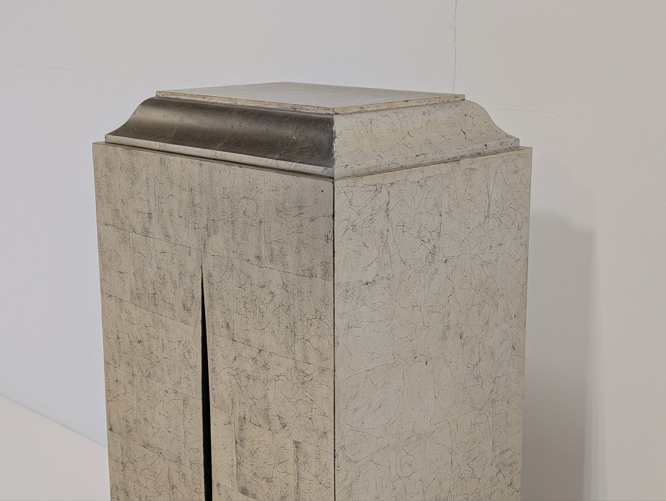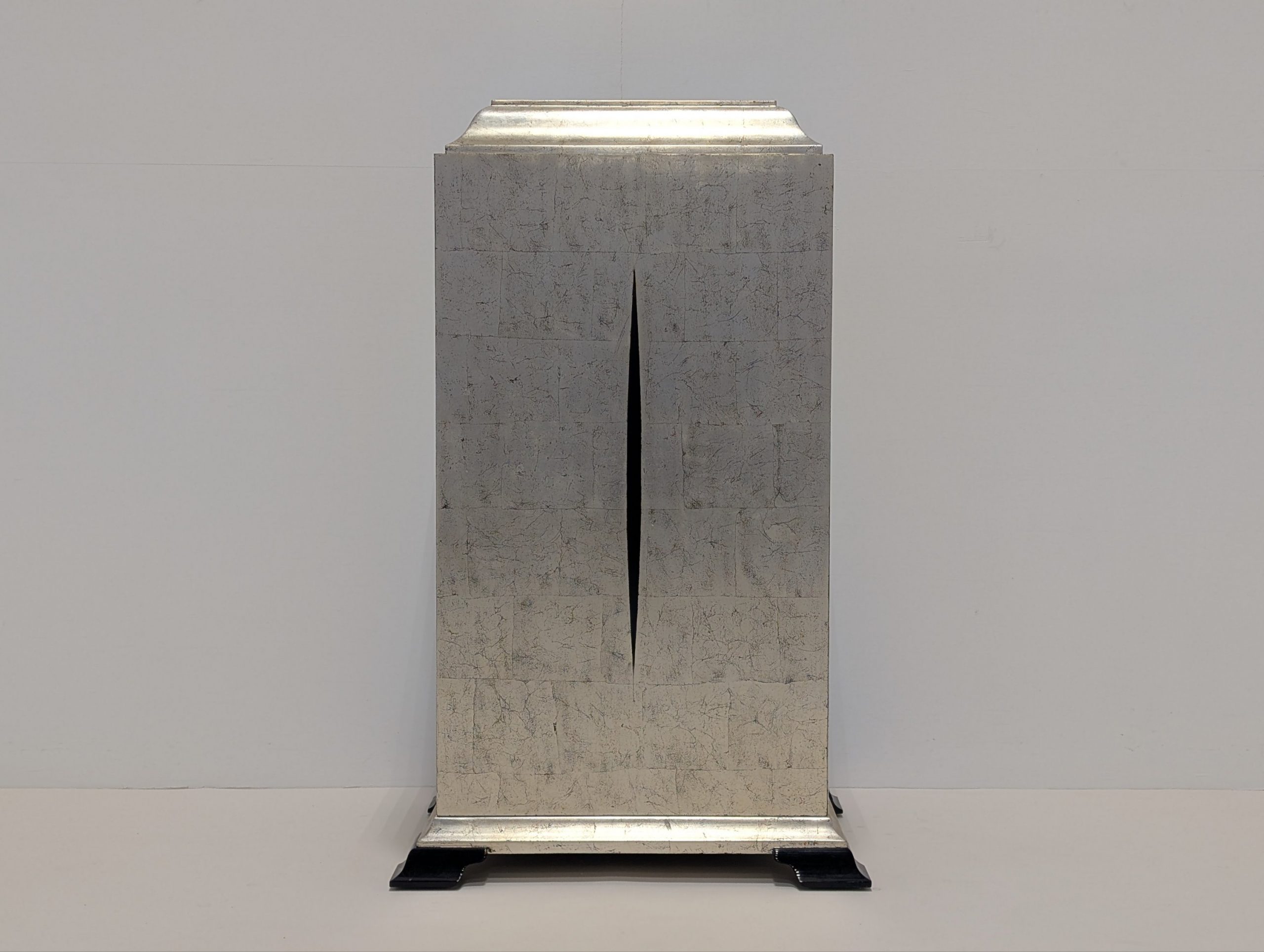 The Folalise is a truly elegant pedestal, crafted in fine veneered wood and crowned with a refined ogee detail. Its sleek silhouette is enhanced by Christopher Guy’s signature Silk-Cut design, subtly gracing the front of a concealed door. Behind the discreet façade lies a shelved compartment, offering both practicality and understated luxury. Finished to bespoke specifications, the Folalise embodies timeless sophistication and functional artistry.