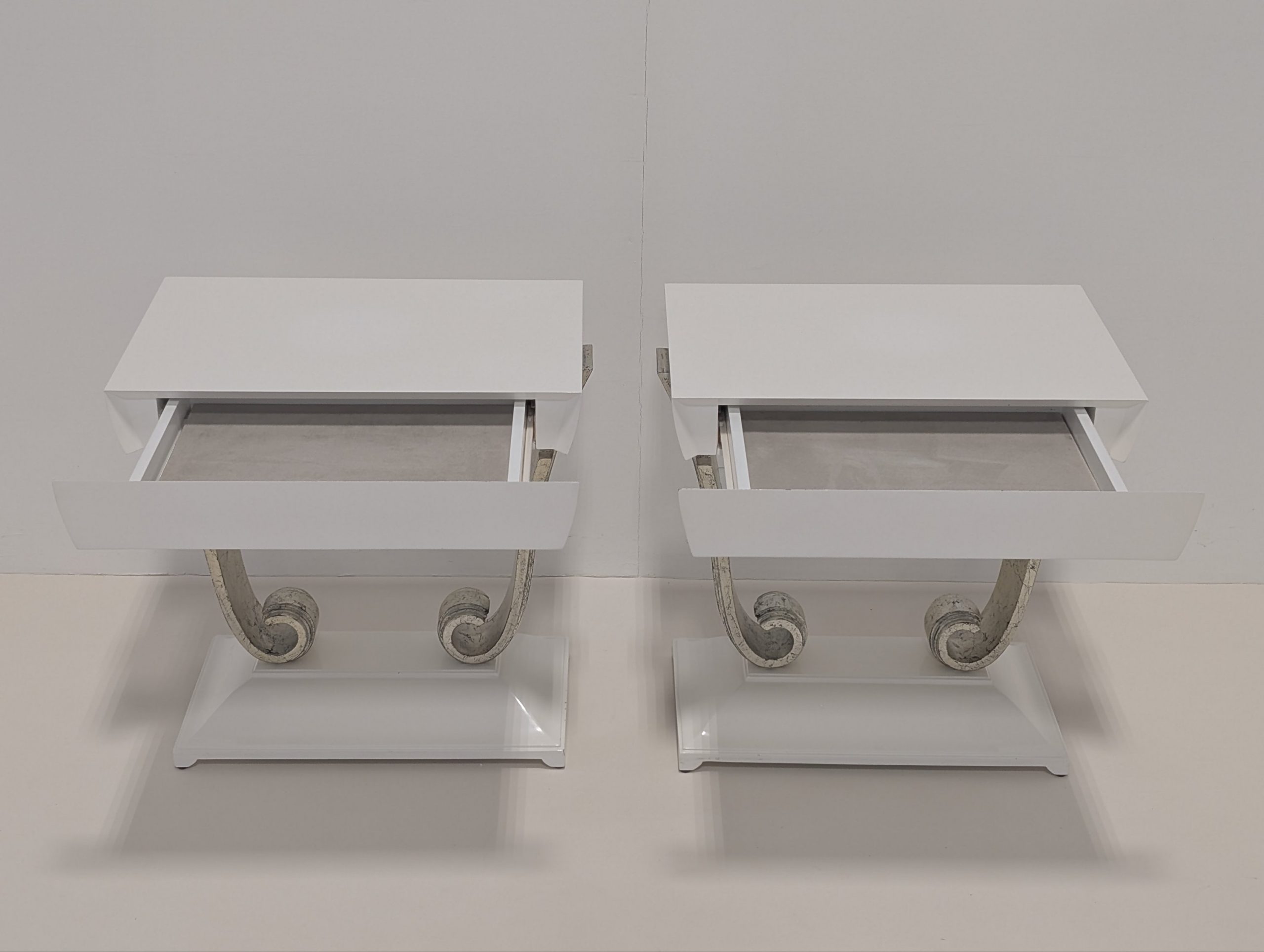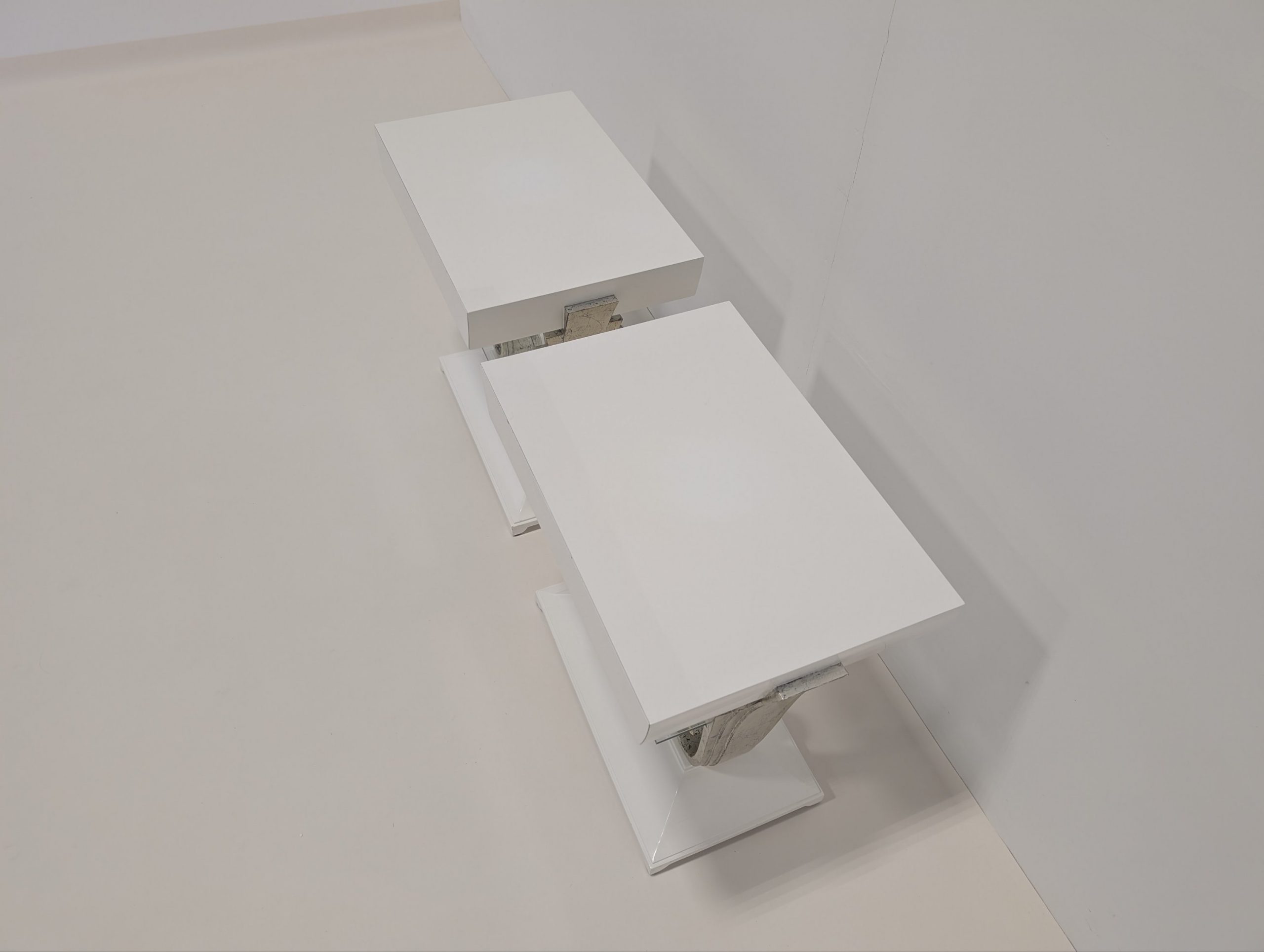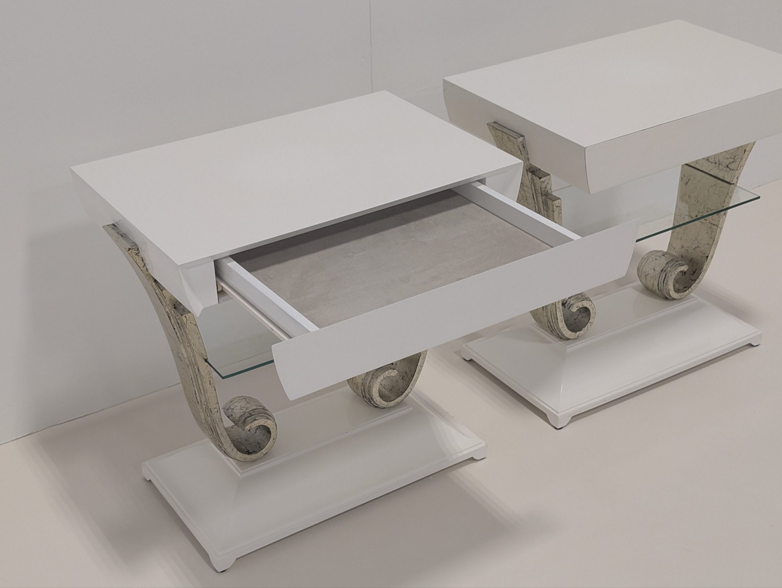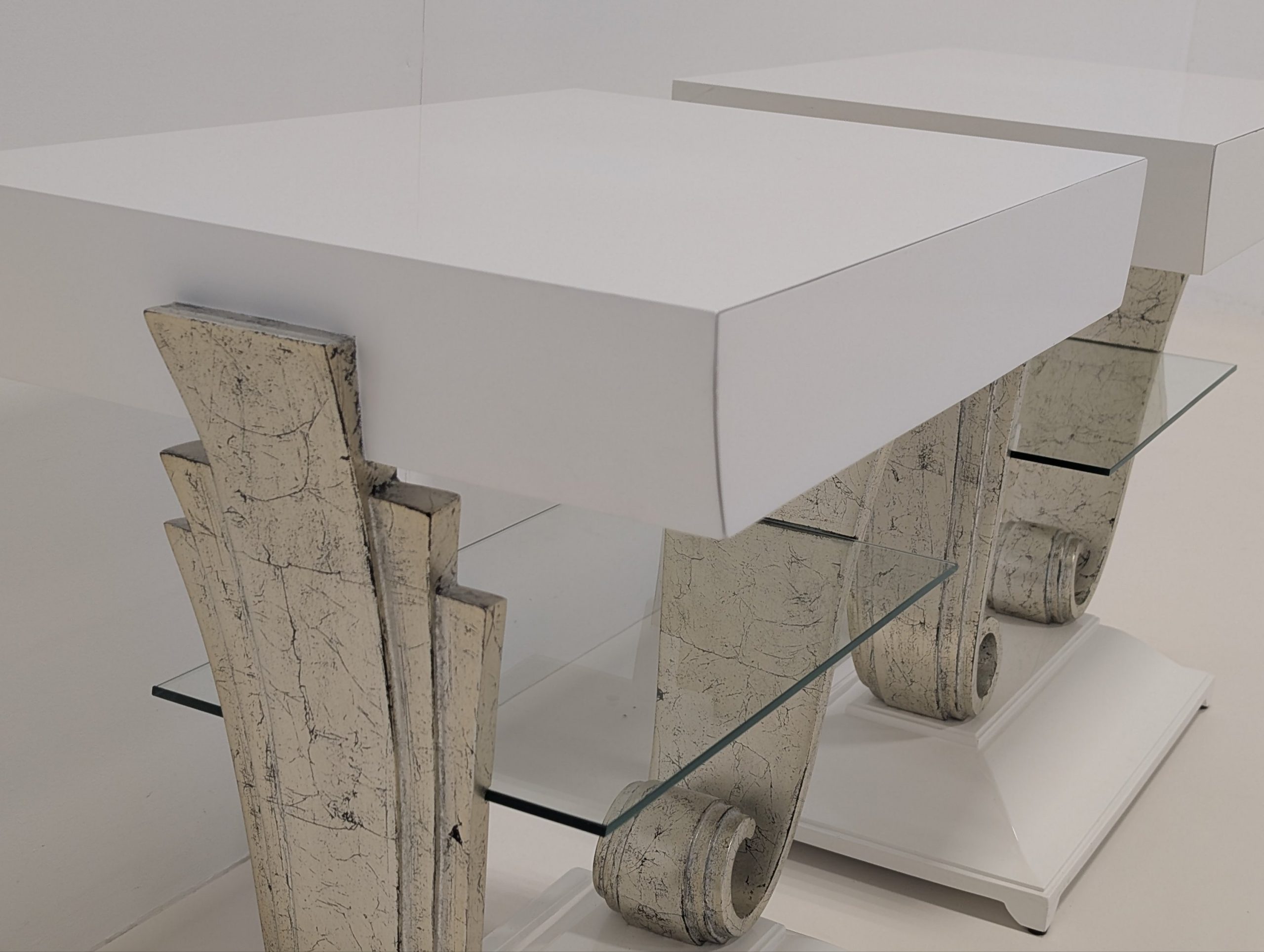 Elegantly crafted to meet the client’s refined taste, the Lorenzo Bedside Tables by Christopher Guy feature a luxurious white lacquer finish accented with striking Black Sea silver leaf detailing. A perfect blend of sophistication and functionality, these bedside tables embody a timeless style while seamlessly complementing the client’s bespoke interior design specifications.