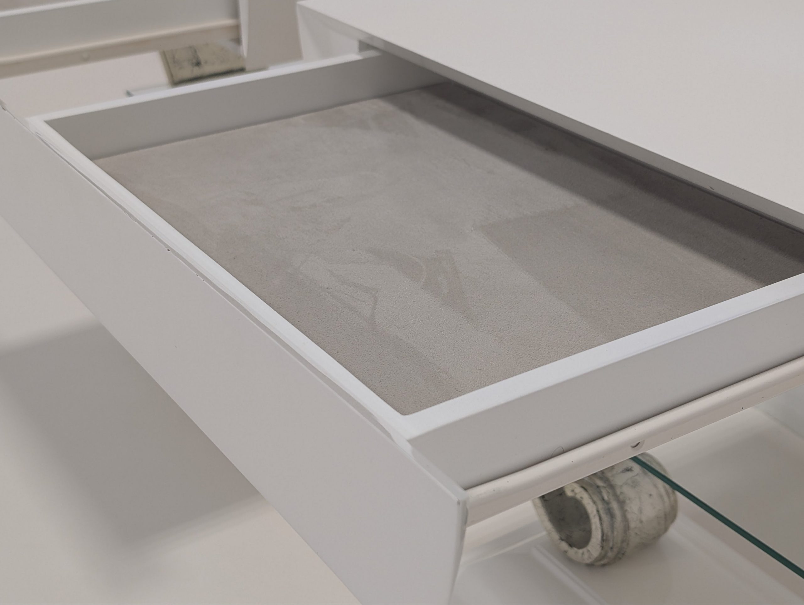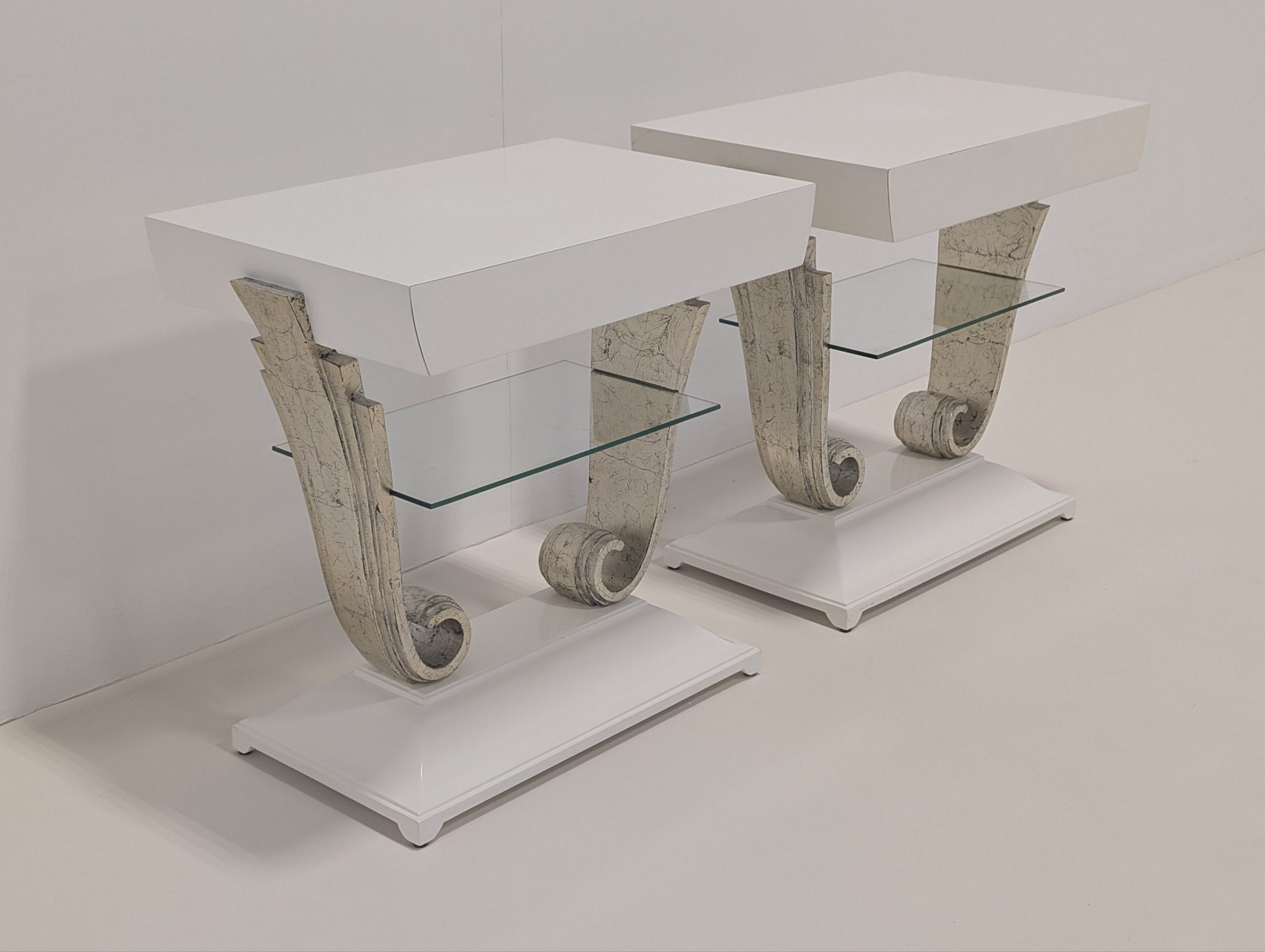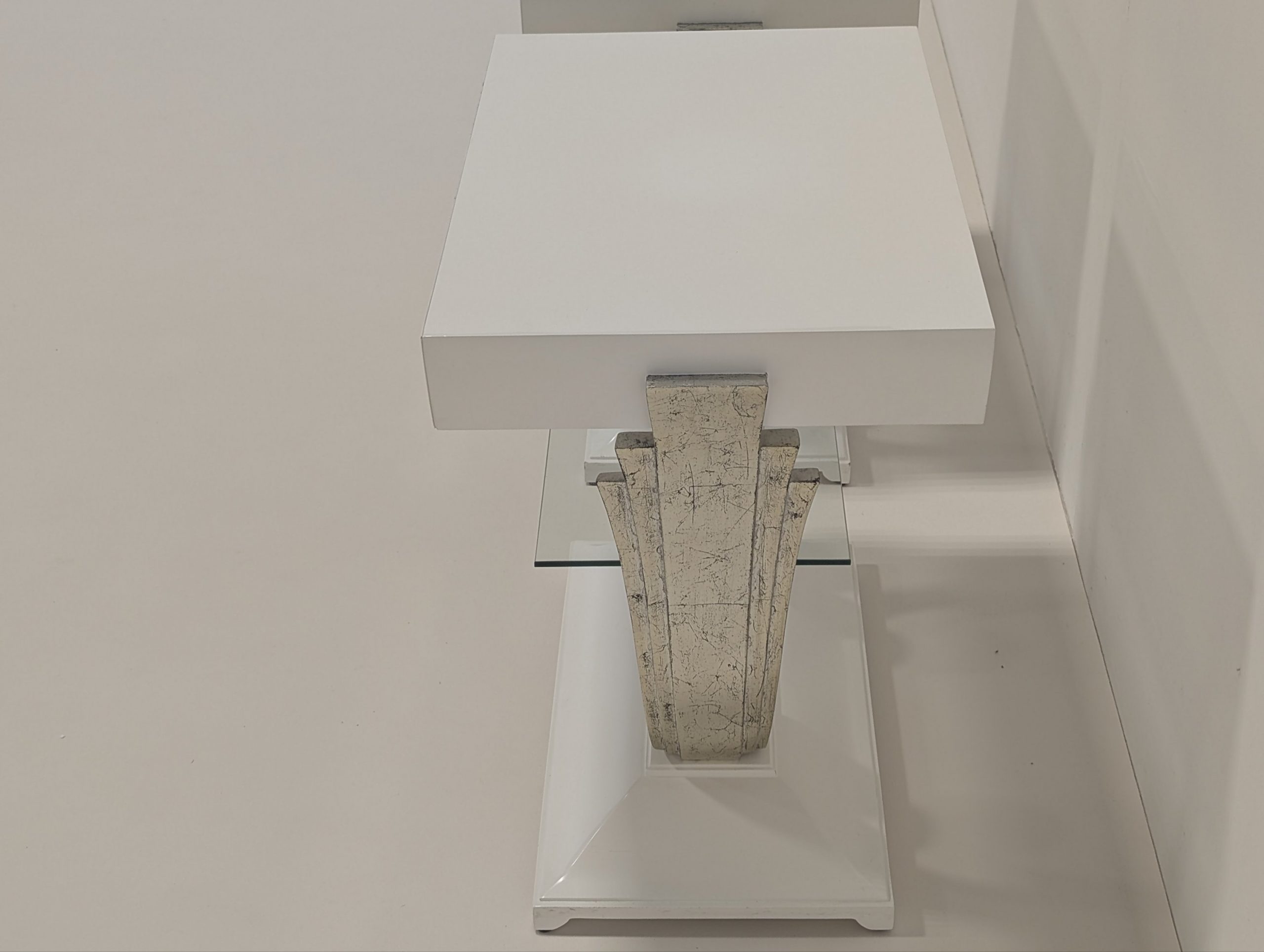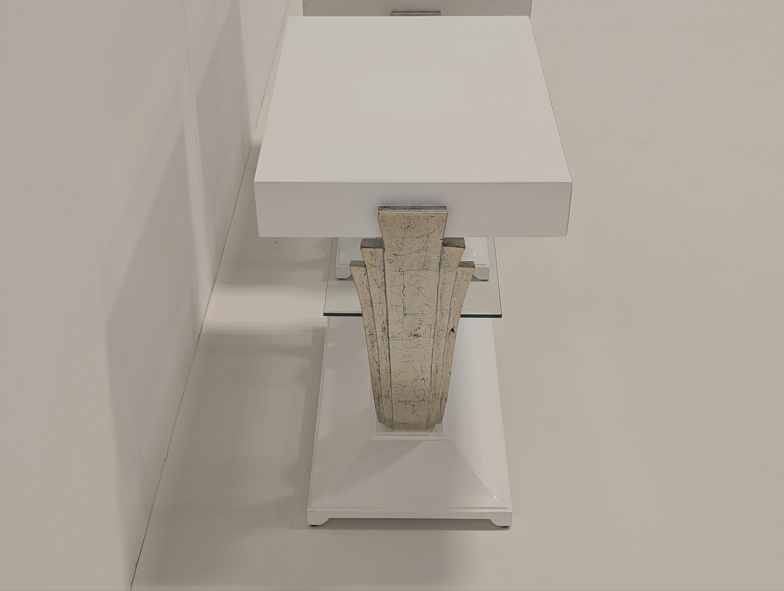 Elegantly crafted to meet the client’s refined taste, the Lorenzo Bedside Tables by Christopher Guy feature a luxurious white lacquer finish accented with striking Black Sea silver leaf detailing. A perfect blend of sophistication and functionality, these bedside tables embody a timeless style while seamlessly complementing the client’s bespoke interior design specifications.