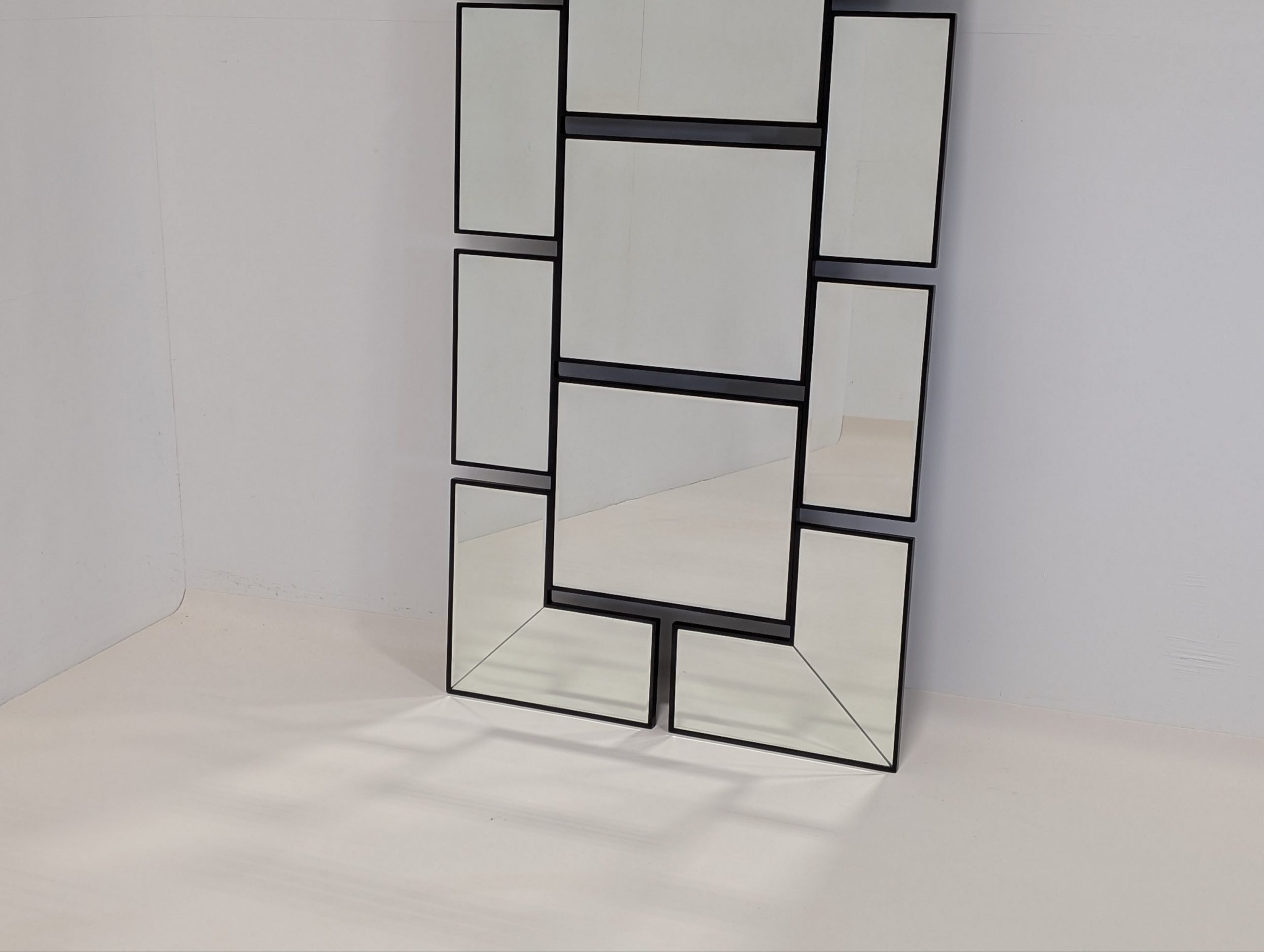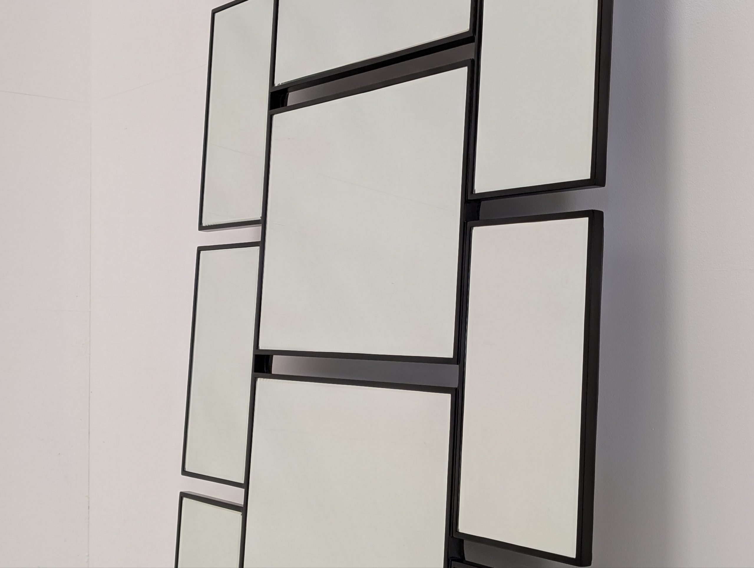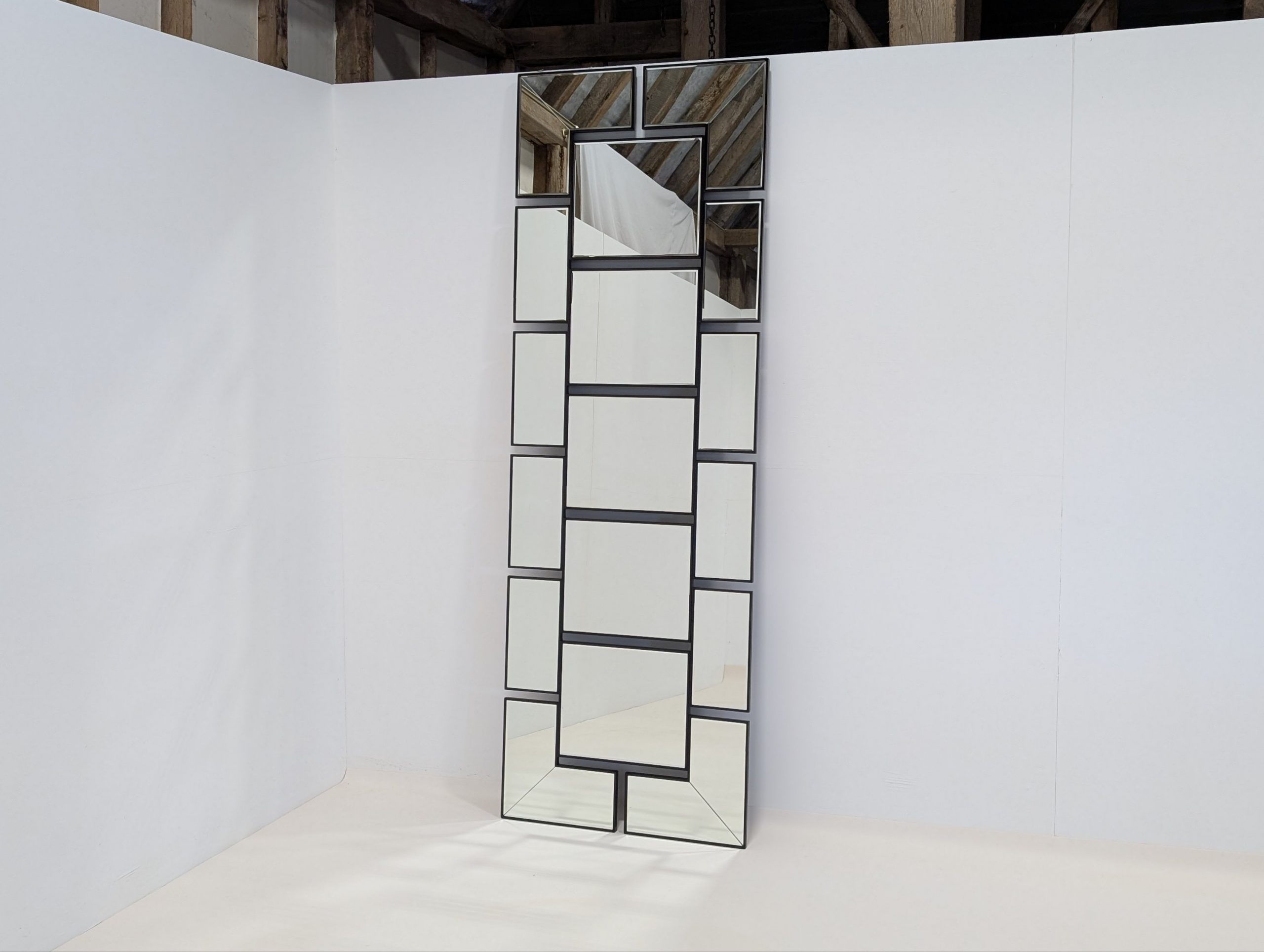 A striking statement of modern elegance, the Jensen Mirror by Christopher Guy features a bold geometric design with segmented rectangular panels framed in sleek black detailing. Its elongated vertical form creates an impressive focal point, making it ideal for both contemporary and transitional interiors. The mirror’s architectural symmetry adds depth and dimension, reflecting light beautifully while enhancing the sense of space. Perfect as a standalone piece or styled in pairs, the Jensen Mirror embodies Christopher Guy’s signature blend of artistry and timeless sophistication.