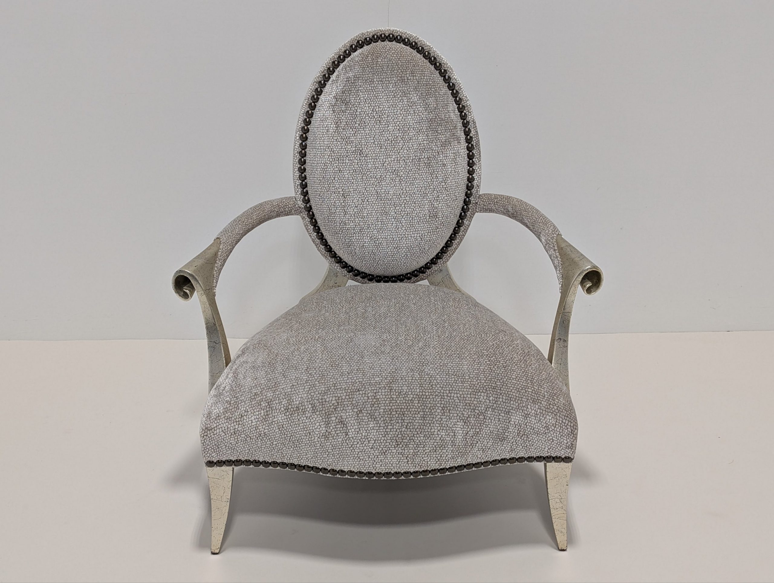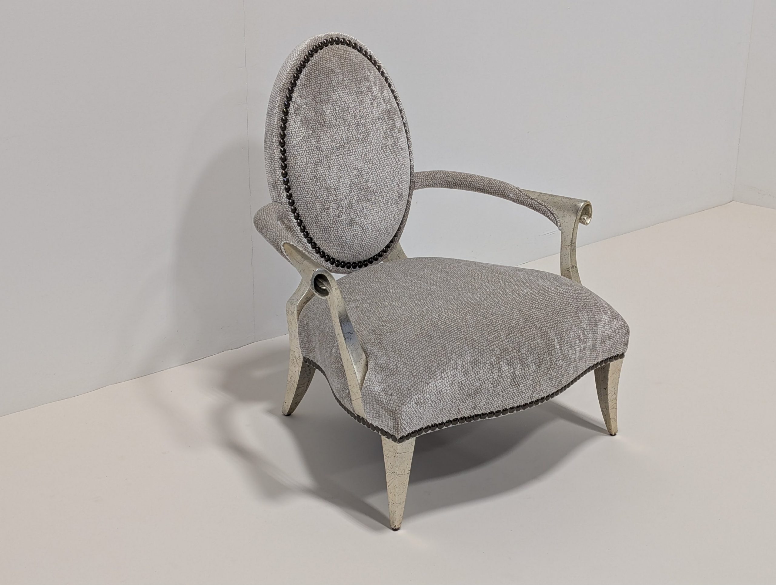 The Christopher Guy Larme Occasional Chair features a graceful teardrop-inspired back, hand-carved detailing, and luxurious upholstery. A refined accent piece that combines sculptural elegance with timeless comfort.