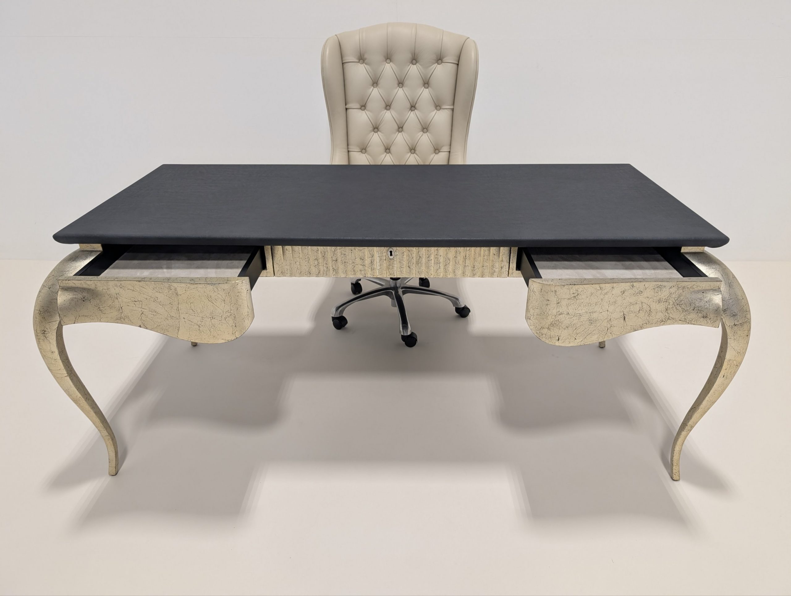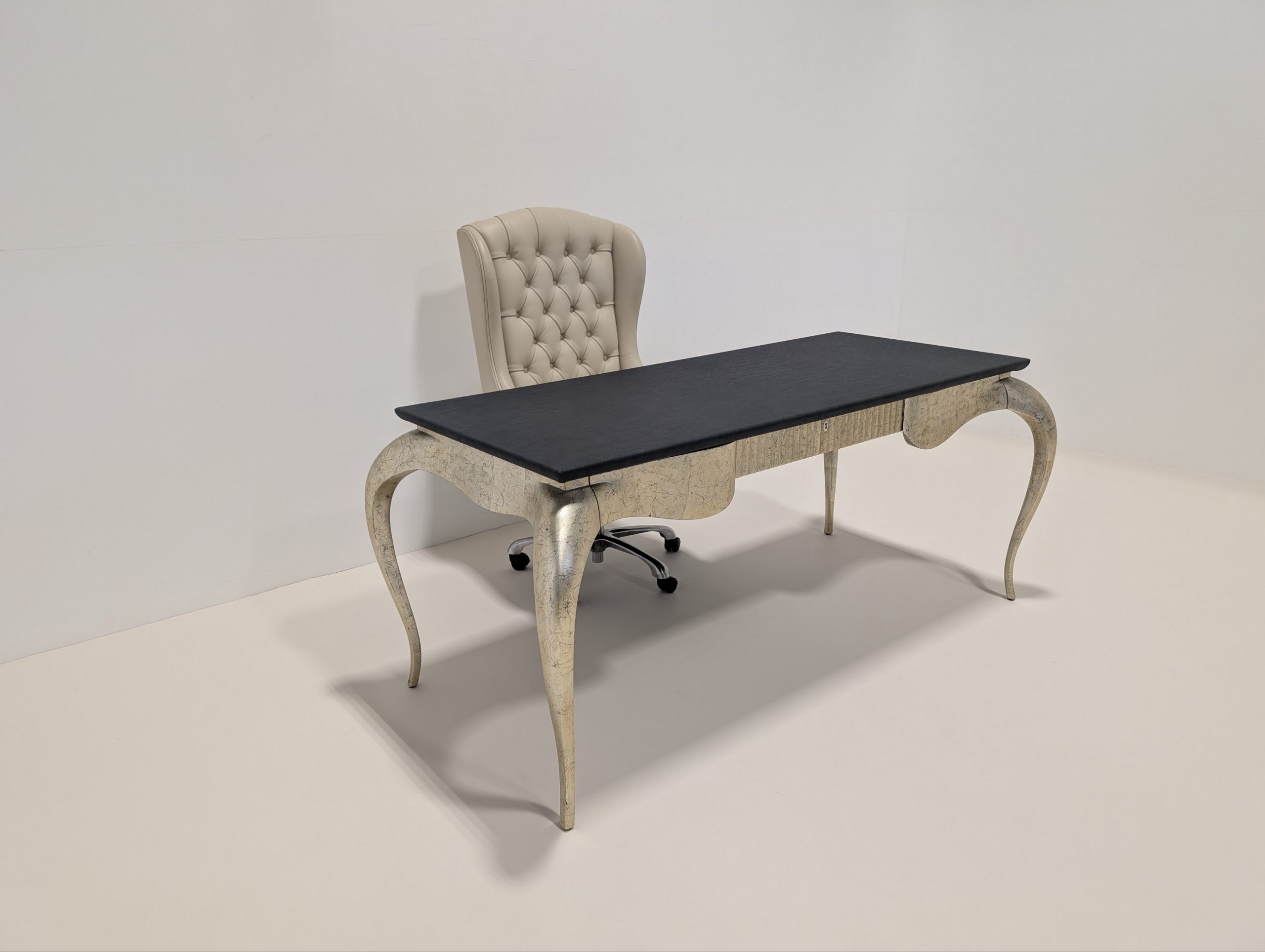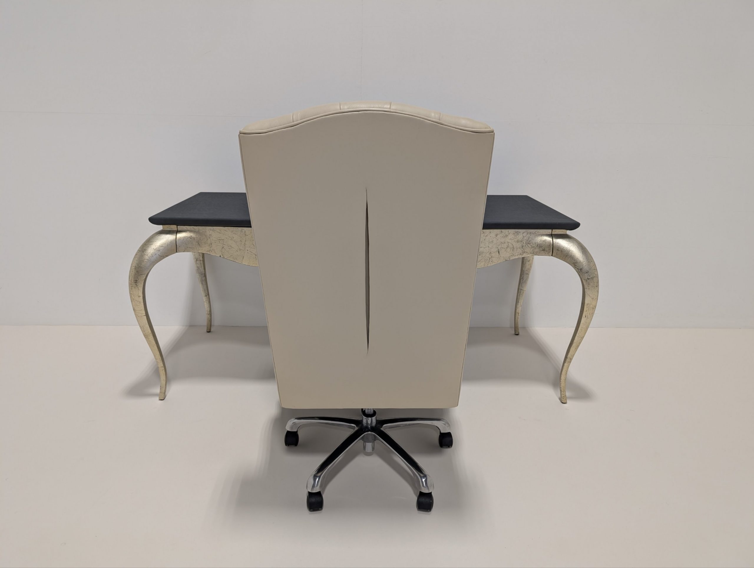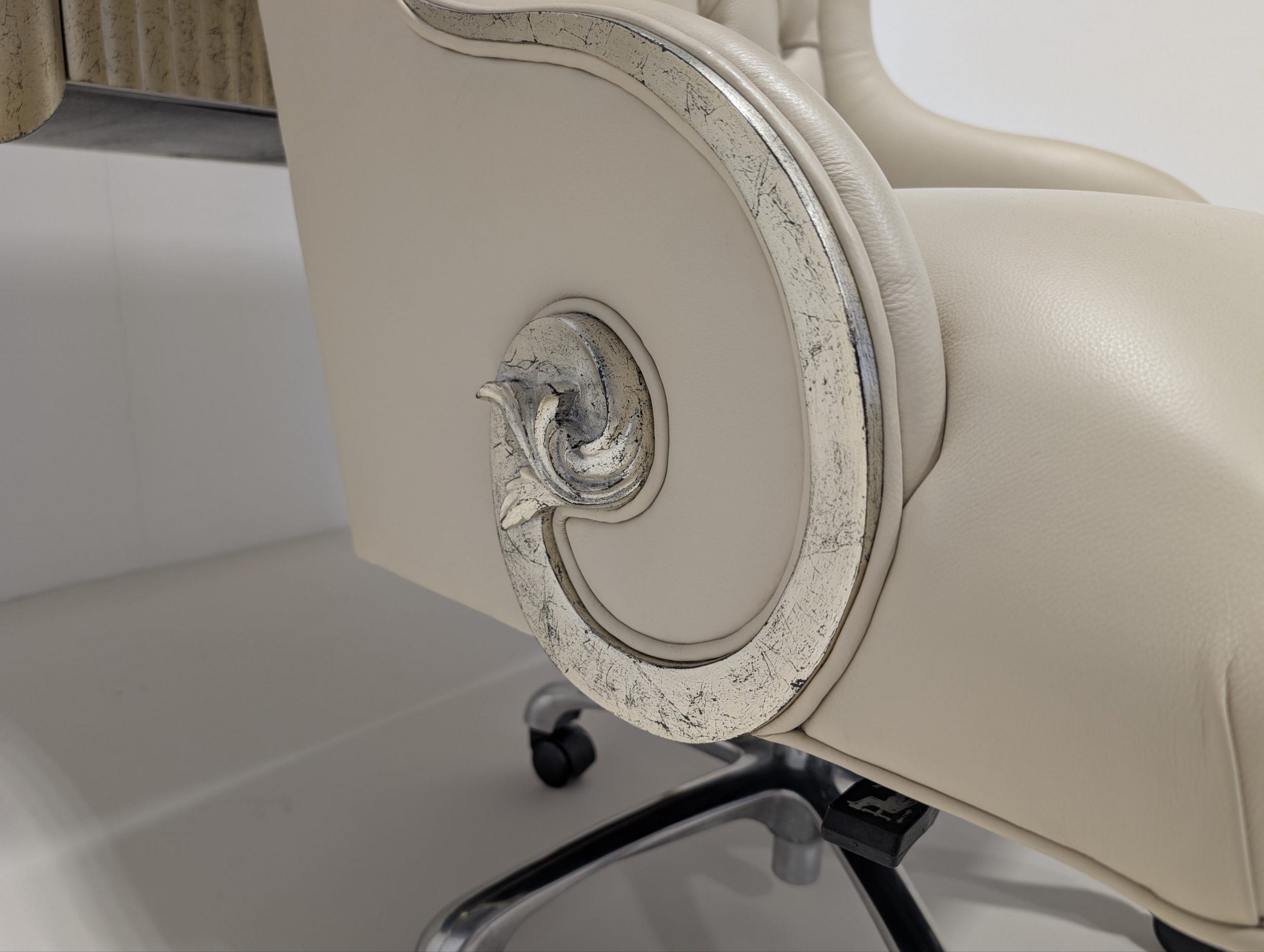 A statement in sophistication, The Chairman by Christopher Guy is a high-backed desk chair that exudes timeless elegance. Upholstered in luxurious ivory leather, it features classic deep-button tufting and exquisitely carved decorative detailing that highlights the brand’s signature artistry. The high back offers refined comfort and commanding presence, making it the perfect blend of function and opulence for any distinguished workspace.