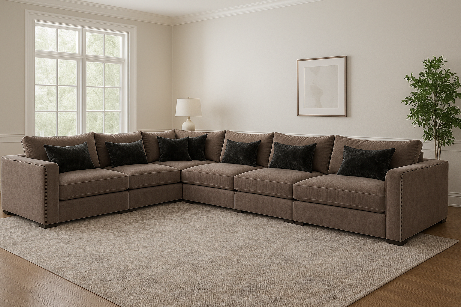 Measurements – 420cm W x 298cm L x 110cm D x 62cm H (86cm H to the cushion top) x 65cm SD x 41cm SH