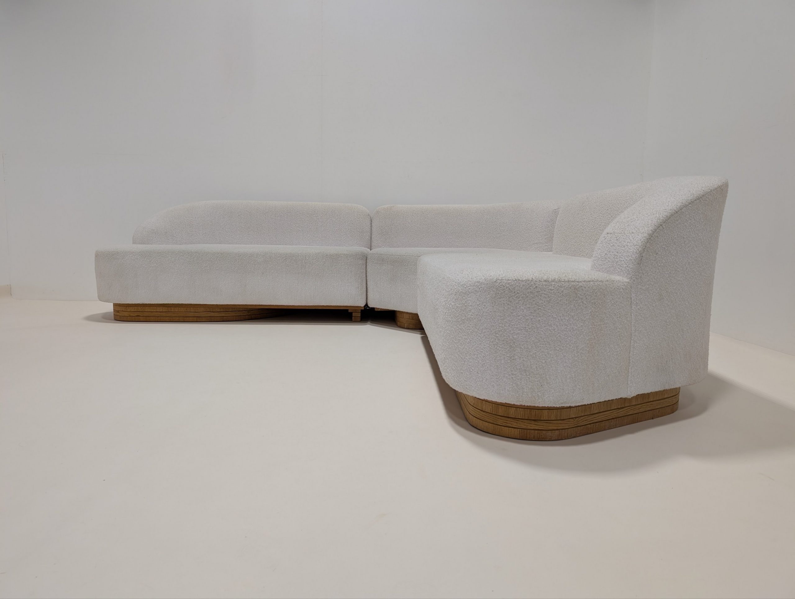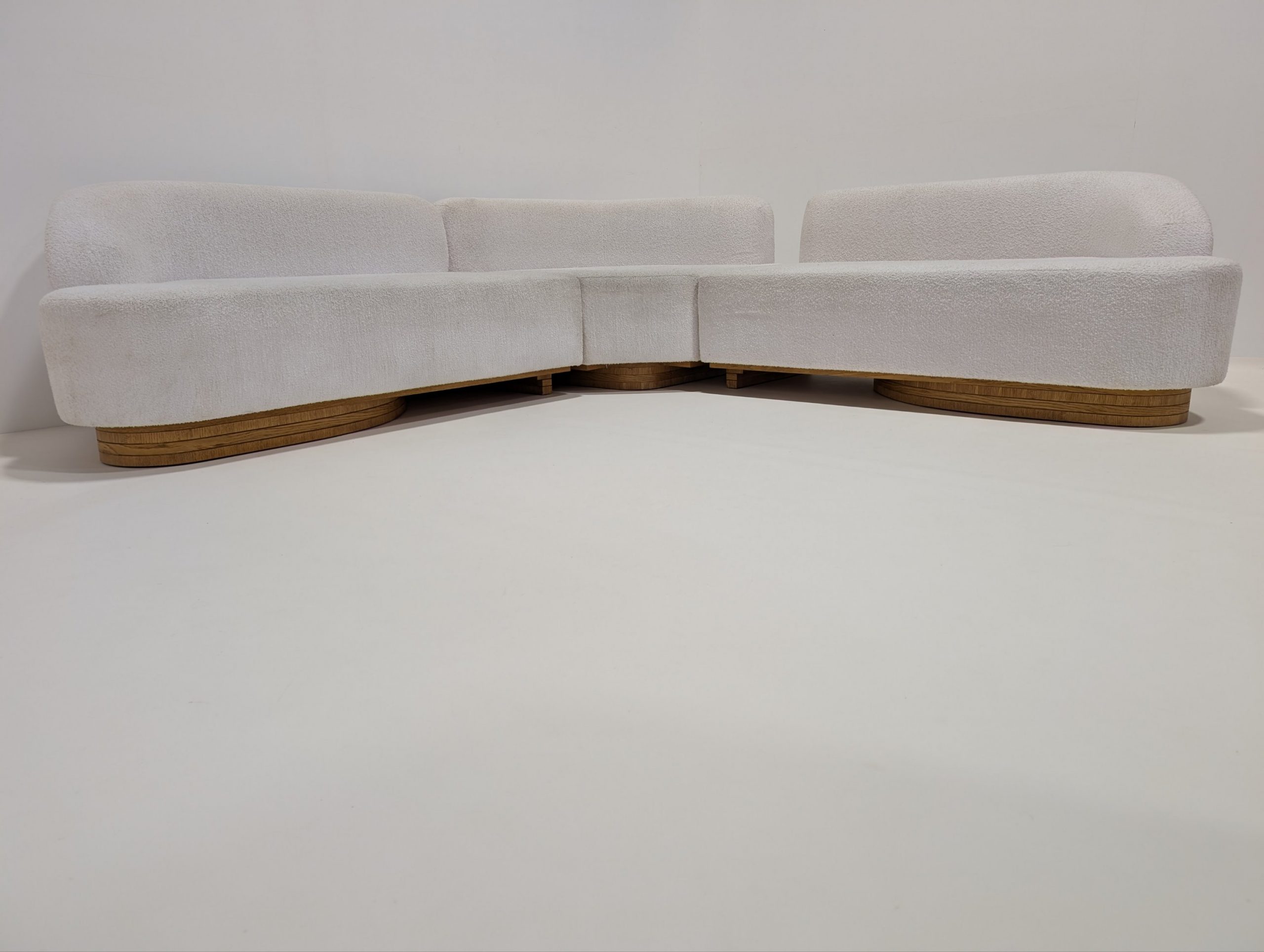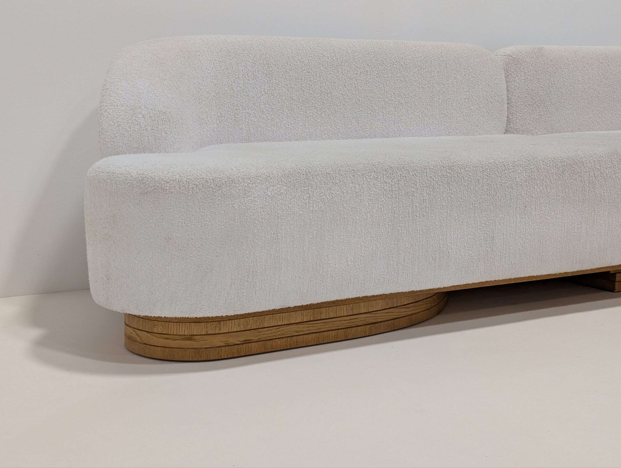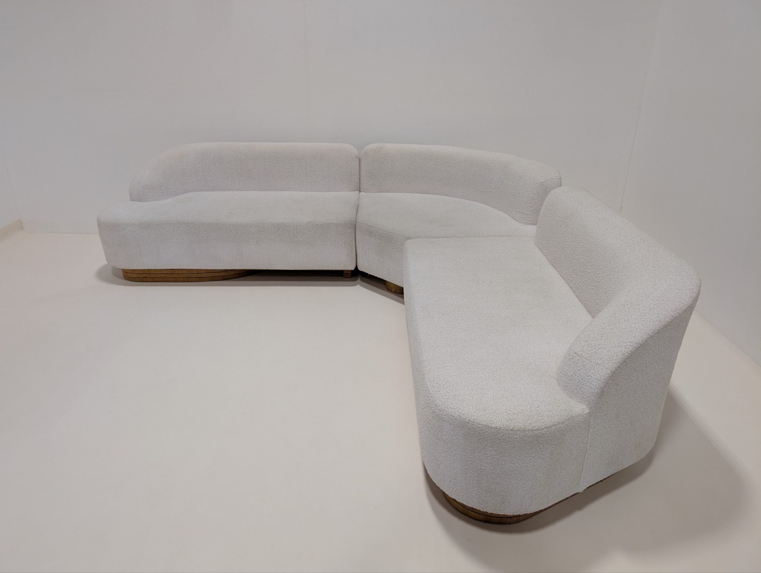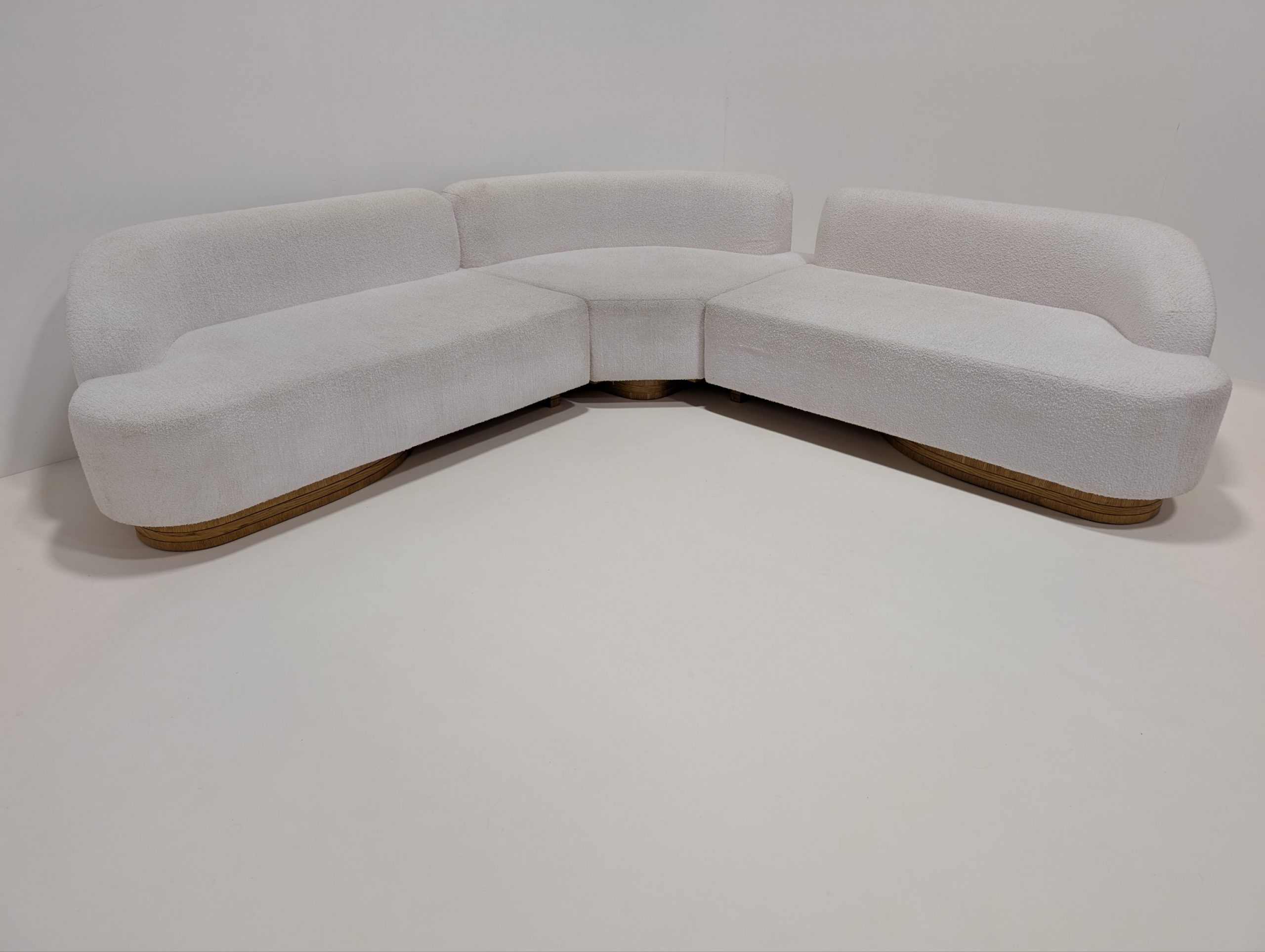 This beautiful Dara Maison Custom Athena sofa makes an impact in any space. Inspired by the curves of the body with soft geometry, the Athena sofa offers flexibility in it’s modular form. It is perfect for any room and is upholstered in family friendly fabric. Stylish Luxury.