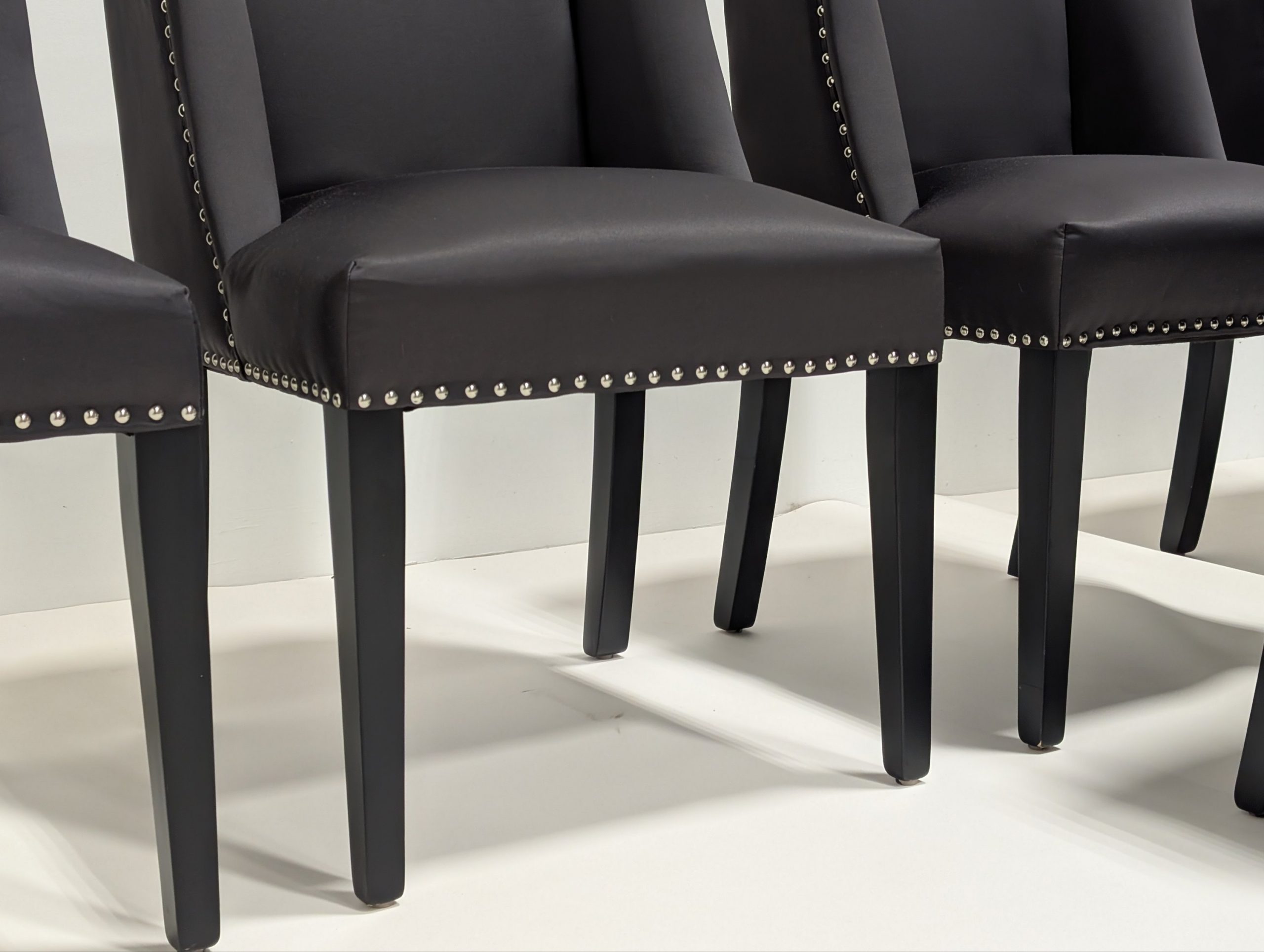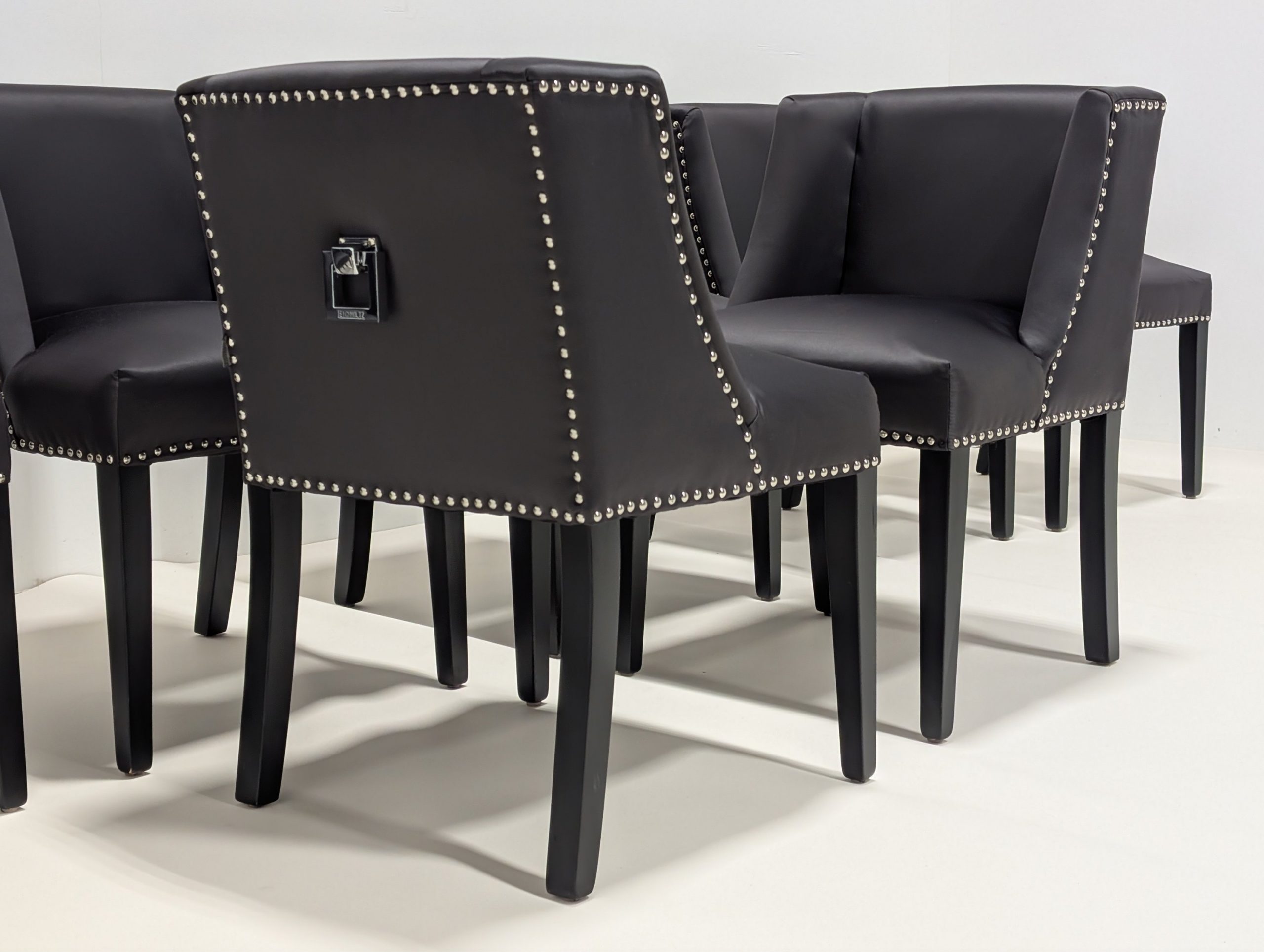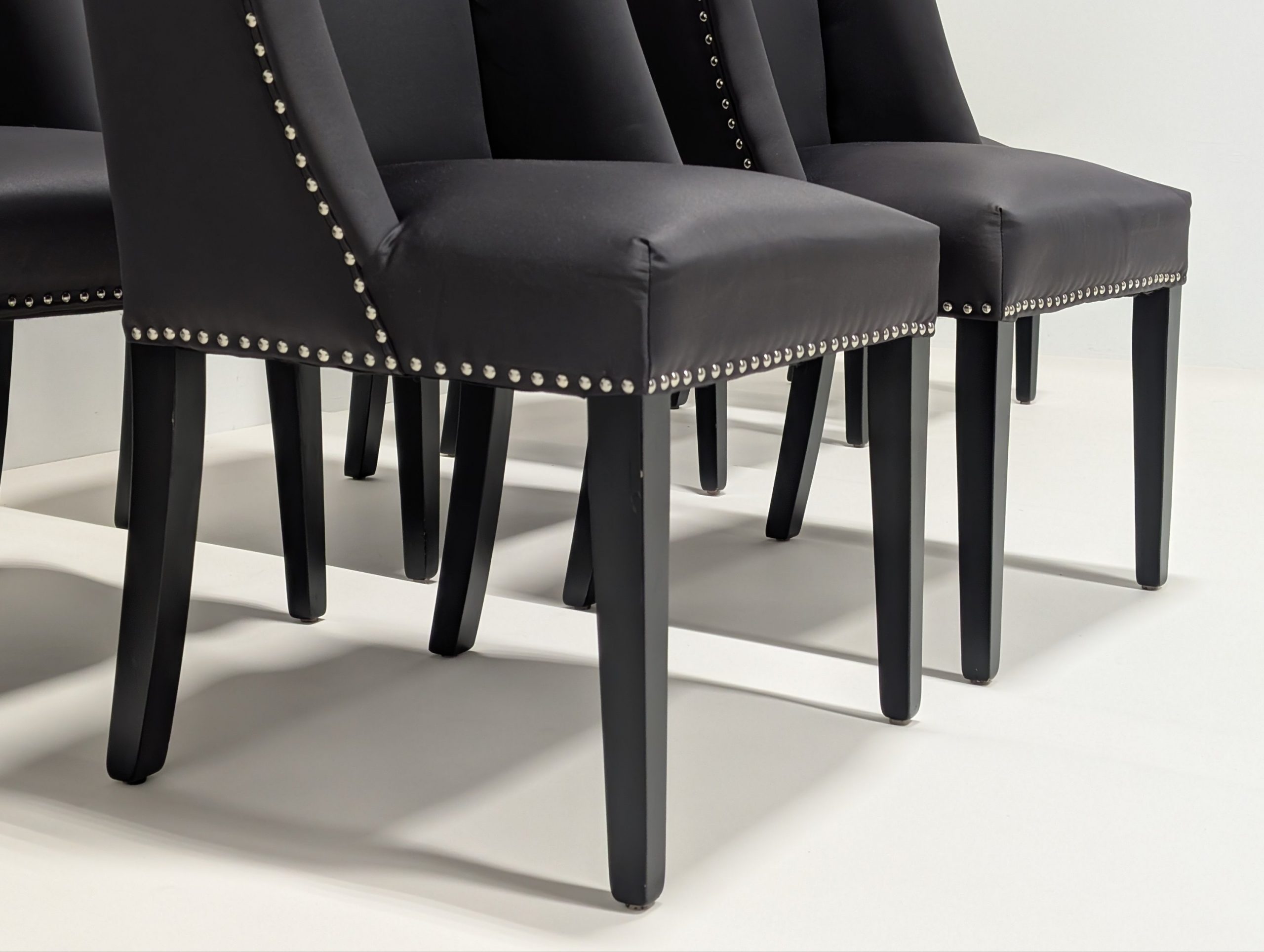 Outfit your seating ensemble in timeless beauty with the St. James Dining Chair. Featuring a black upholstery with brass stud detailing, and black finished wooden legs, this chair will look fabulous in your dining space or even as side or desk chair.