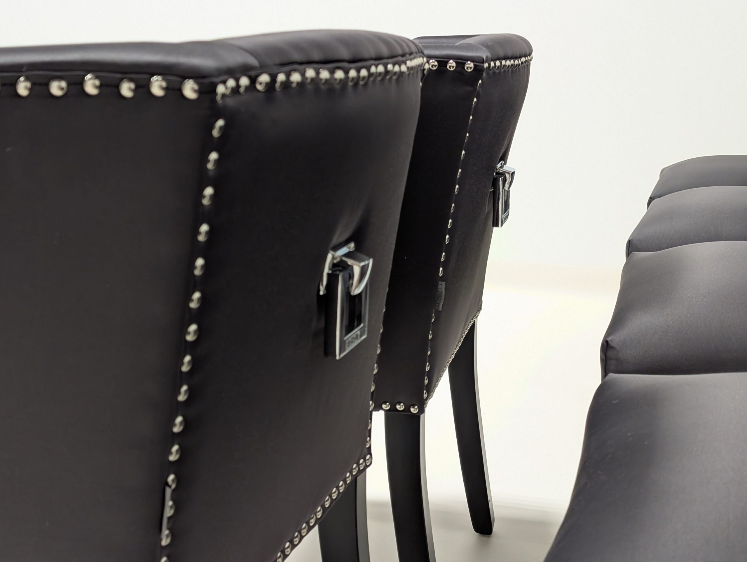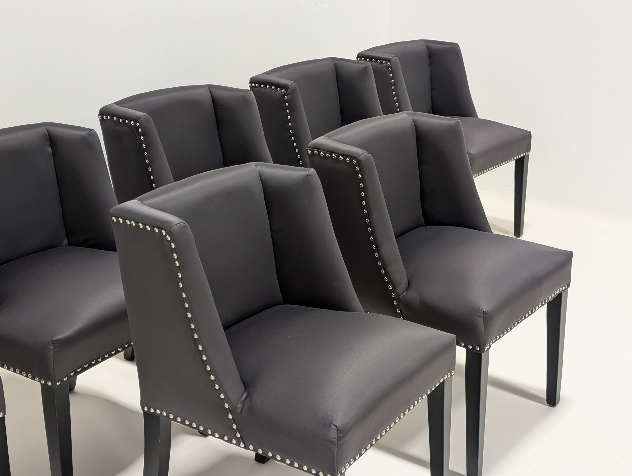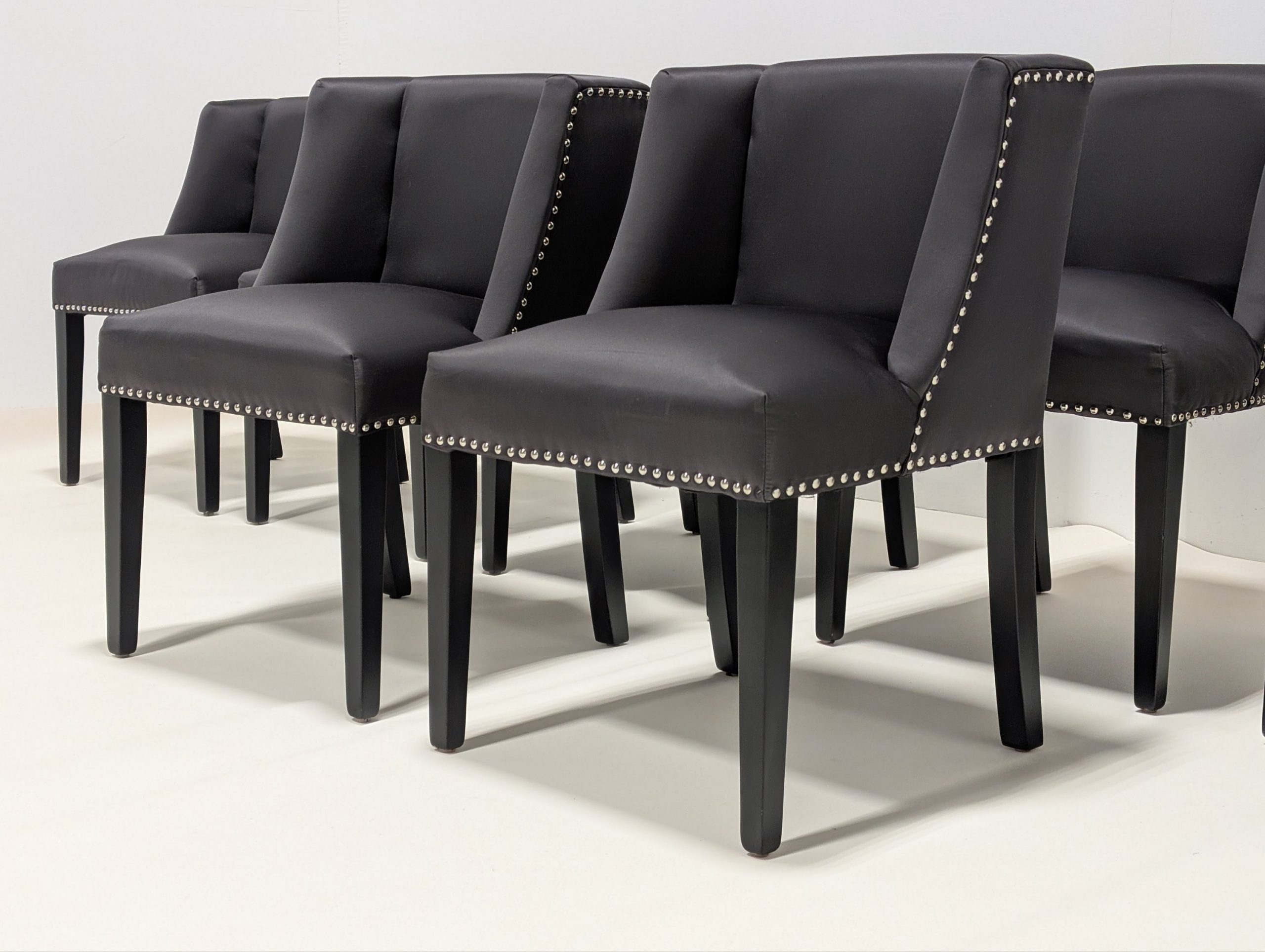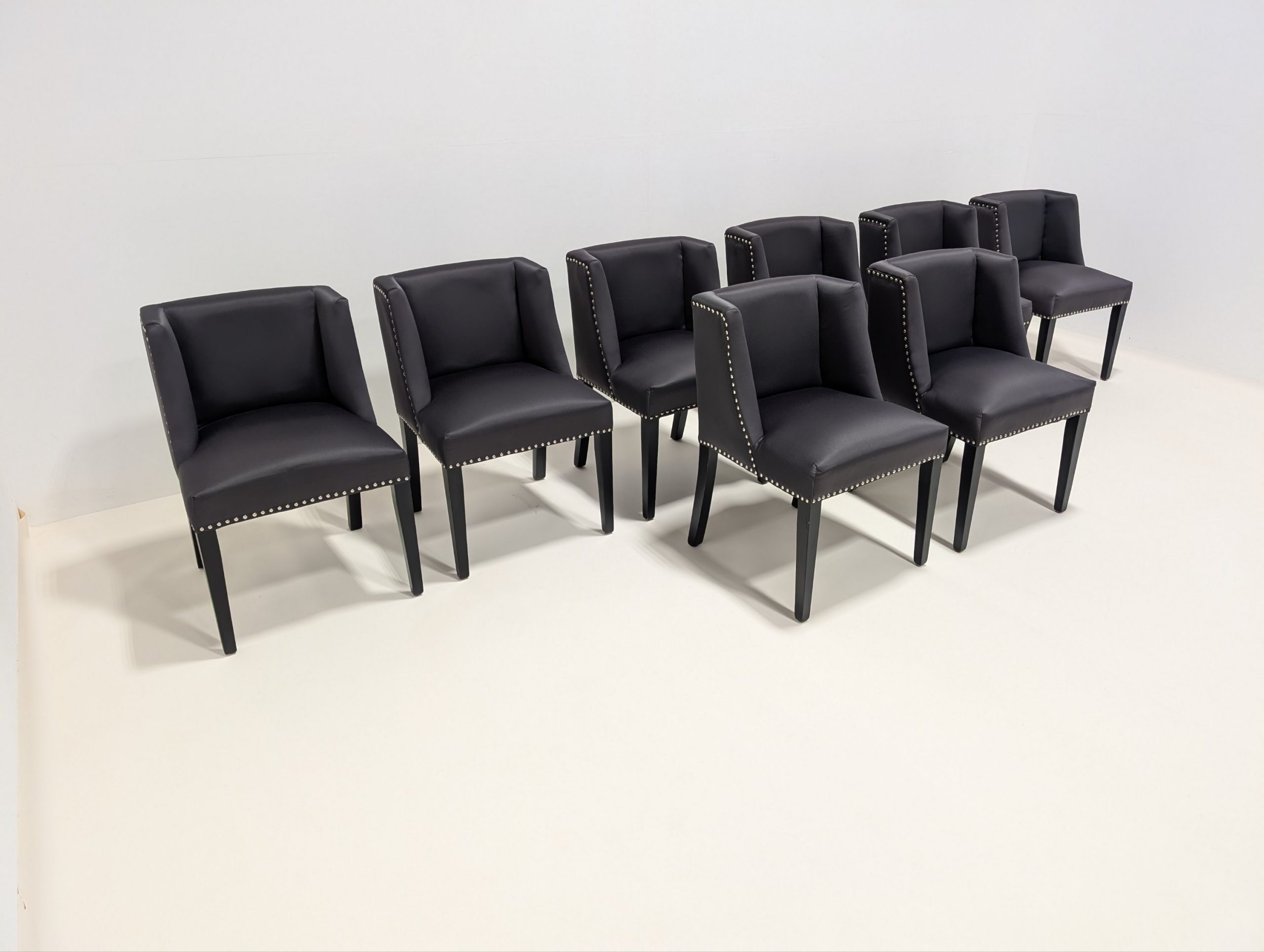 Outfit your seating ensemble in timeless beauty with the St. James Dining Chair. Featuring a black upholstery with brass stud detailing, and black finished wooden legs, this chair will look fabulous in your dining space or even as side or desk chair.
