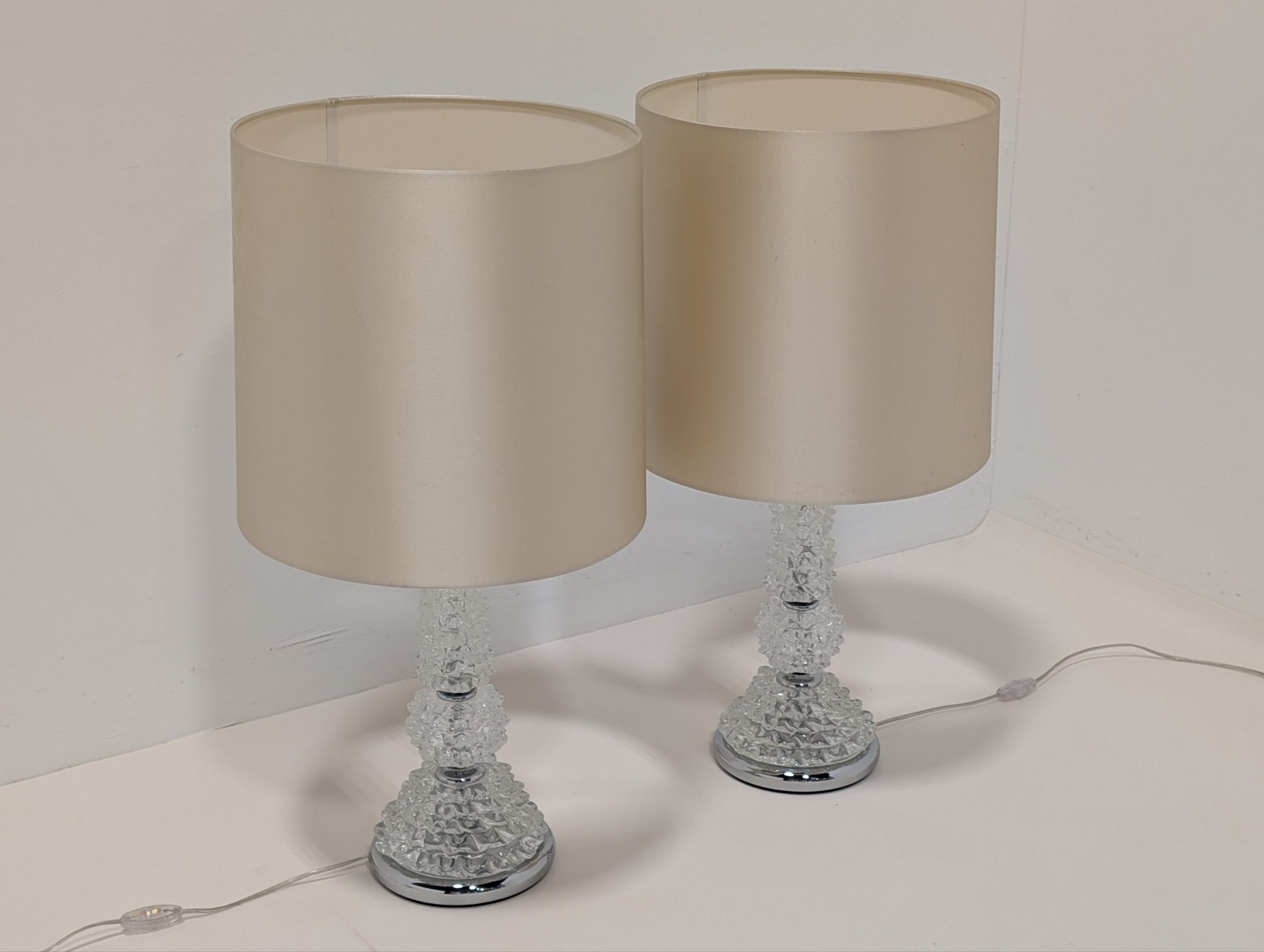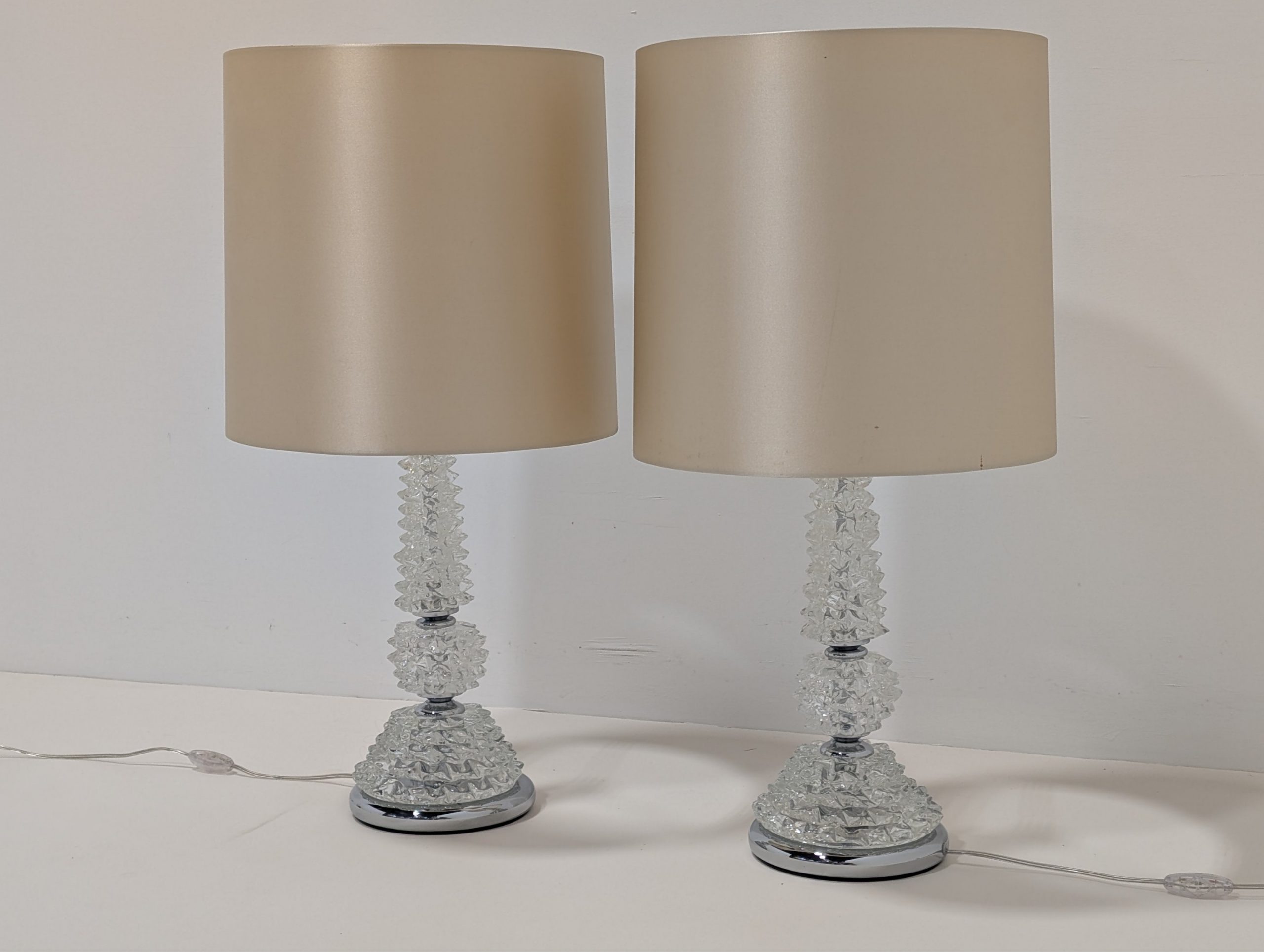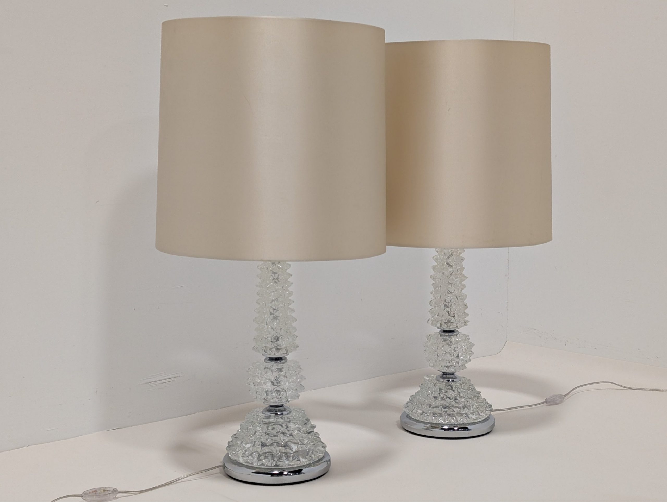 Unique bed side lamp bases hand blown in Murano Venice with Silk shades.
