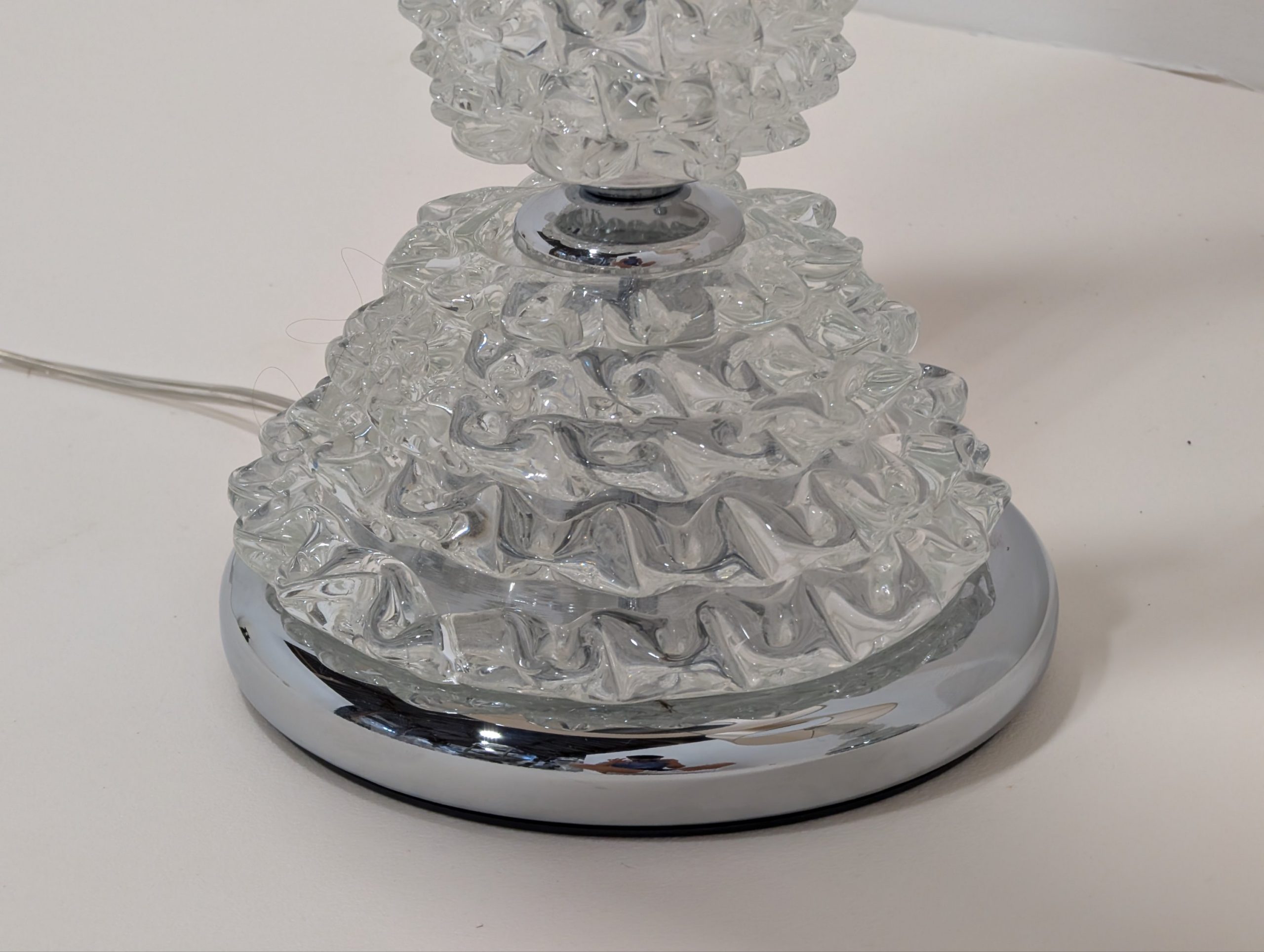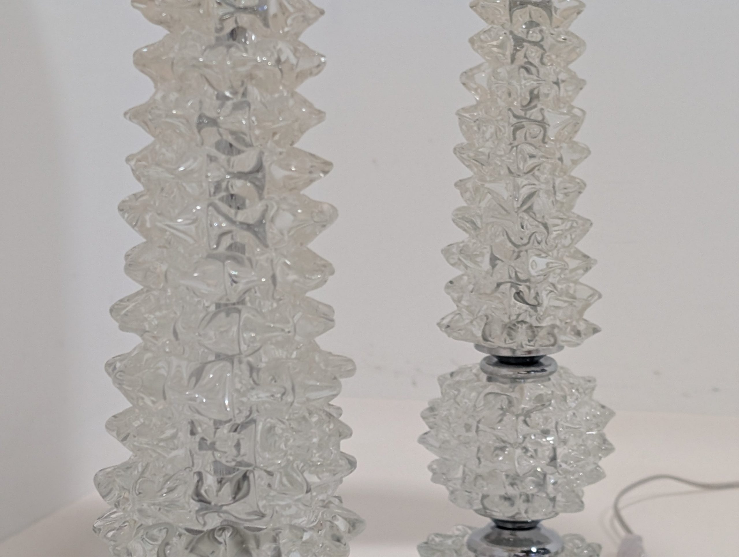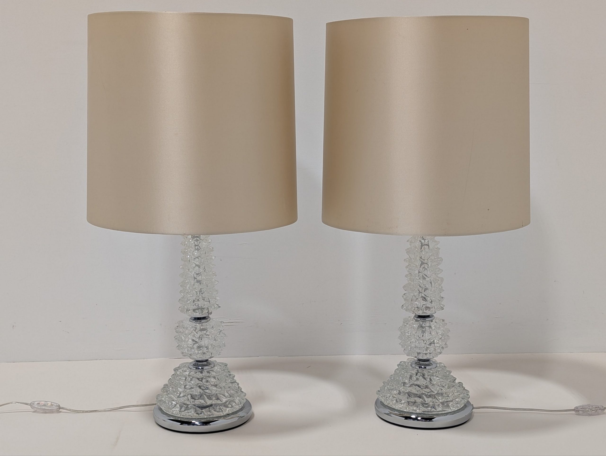 Unique bed side lamp bases hand blown in Murano Venice with Silk shades.