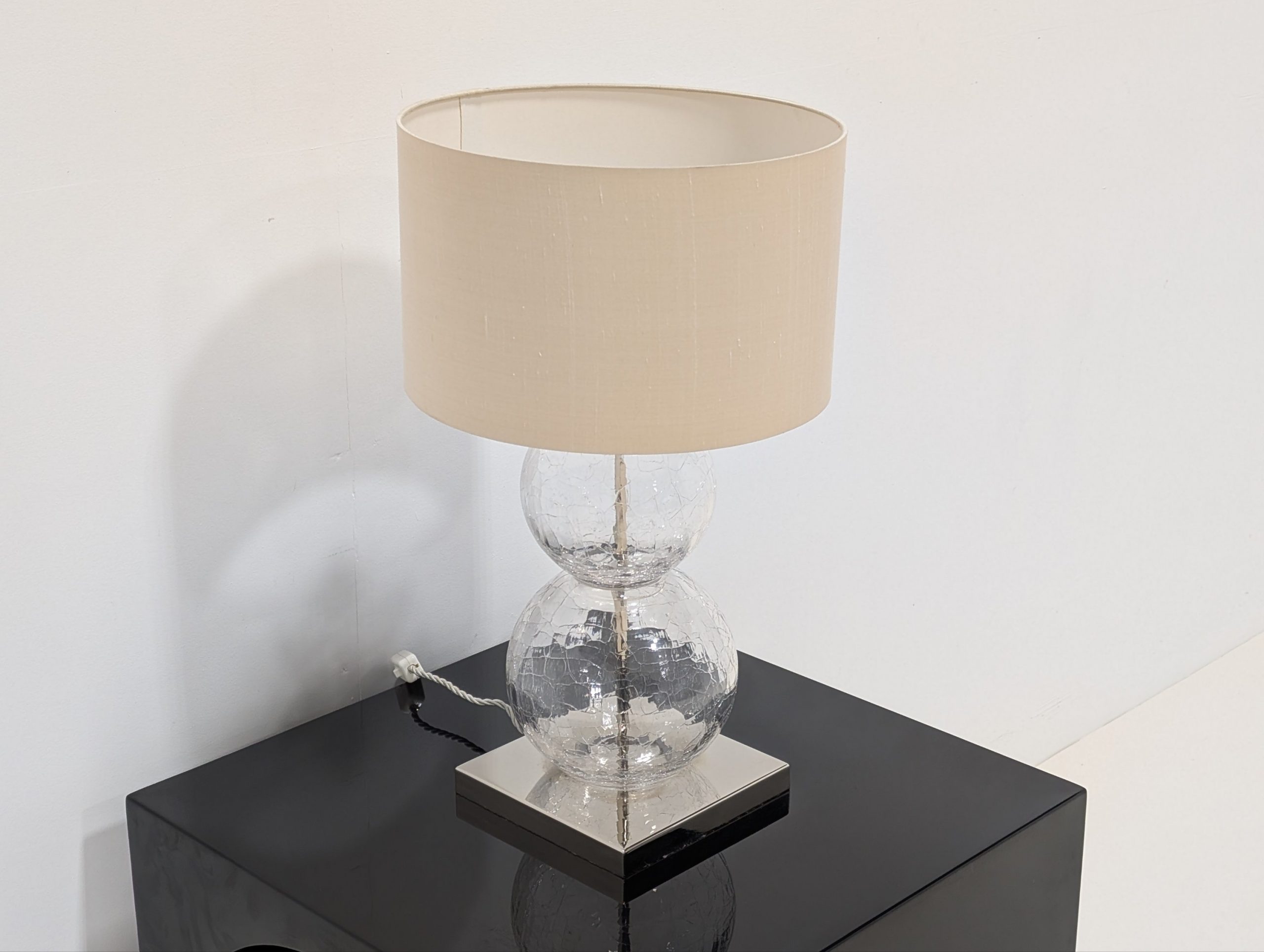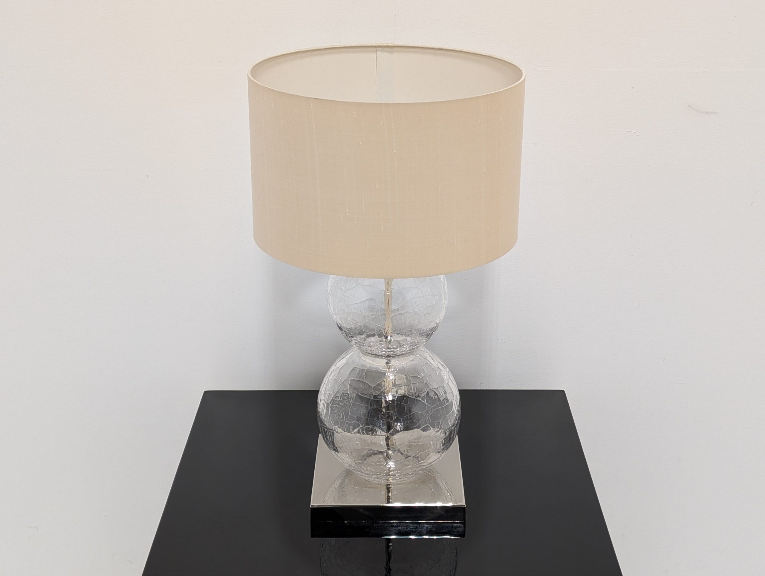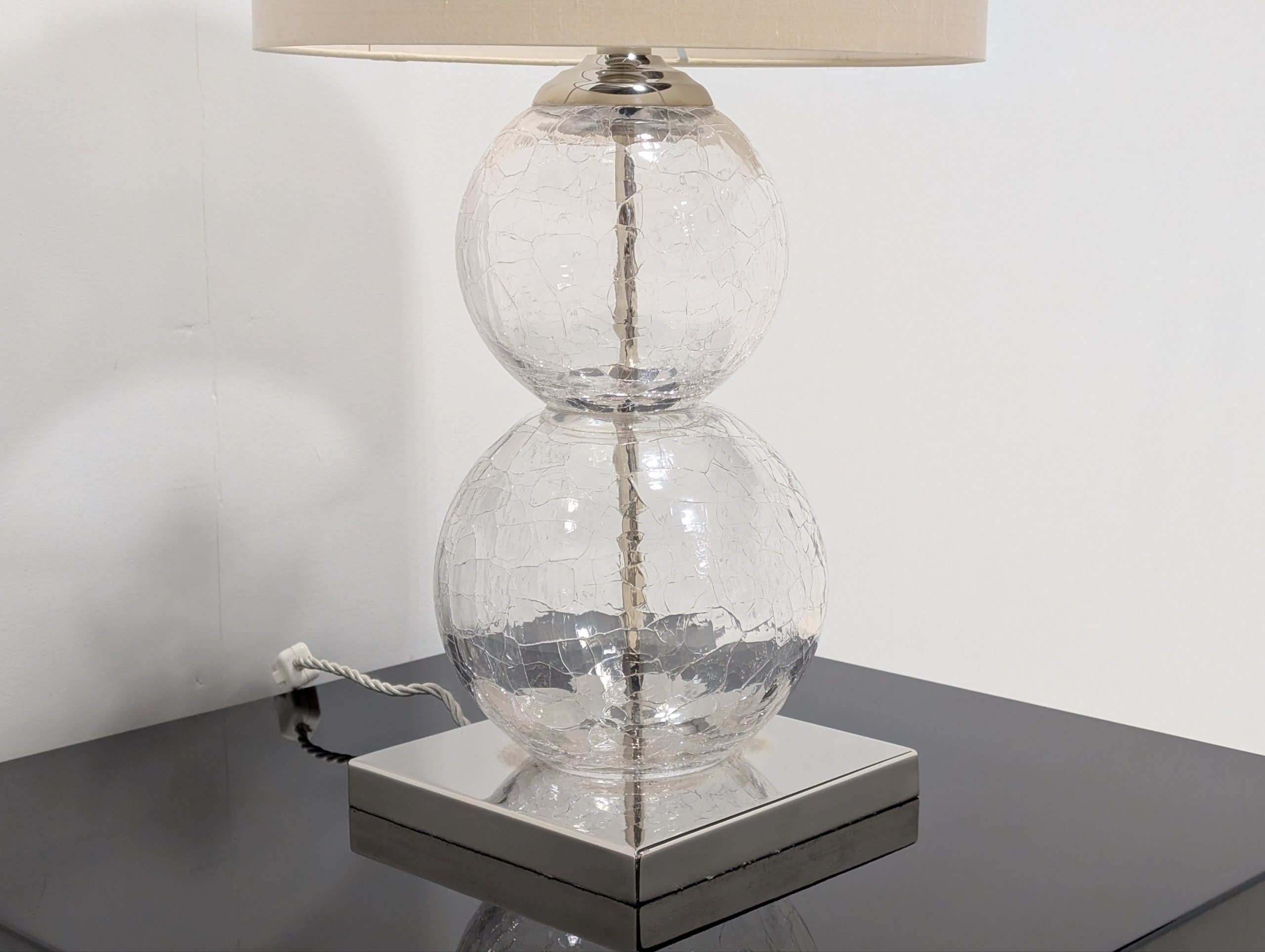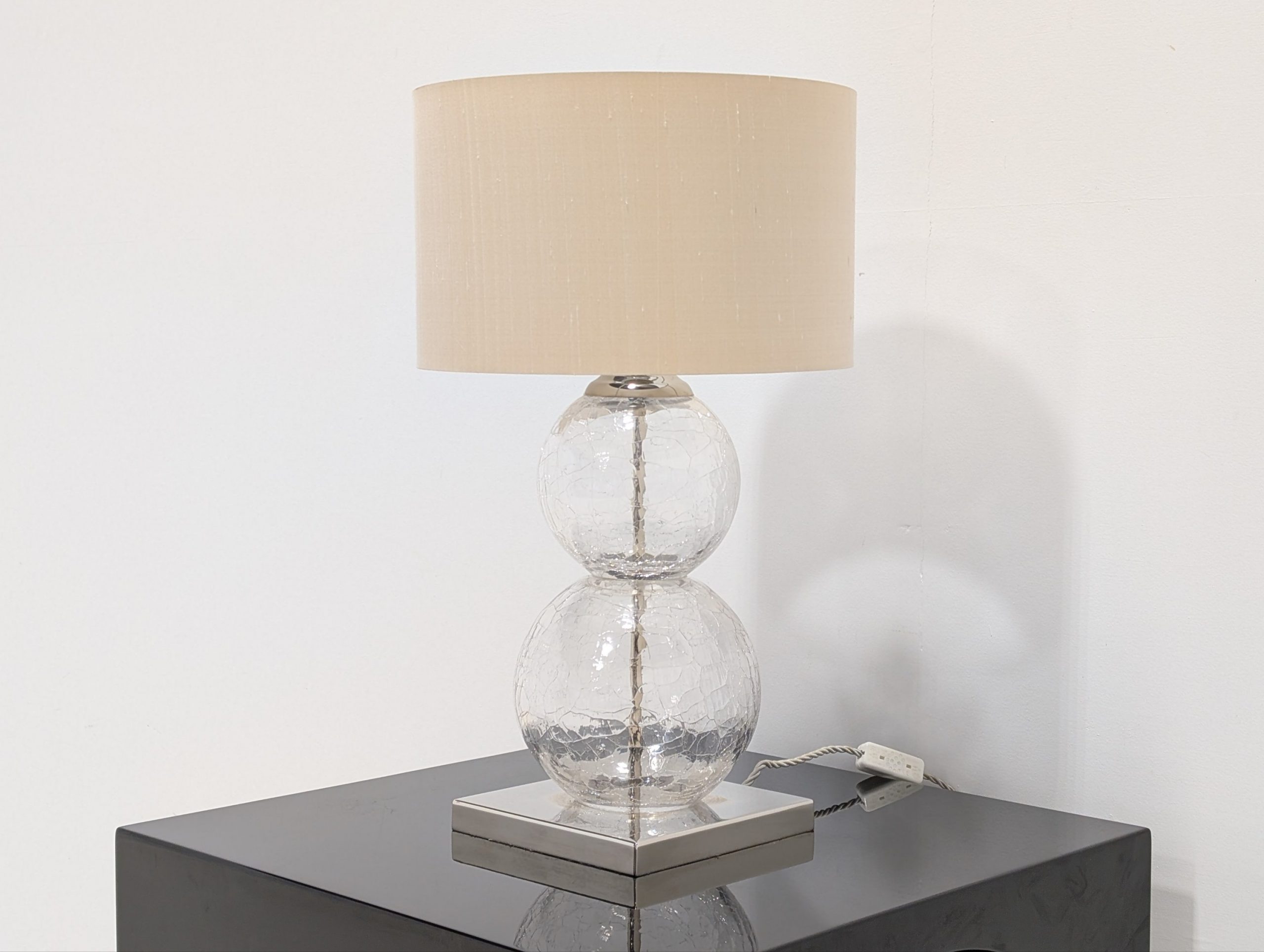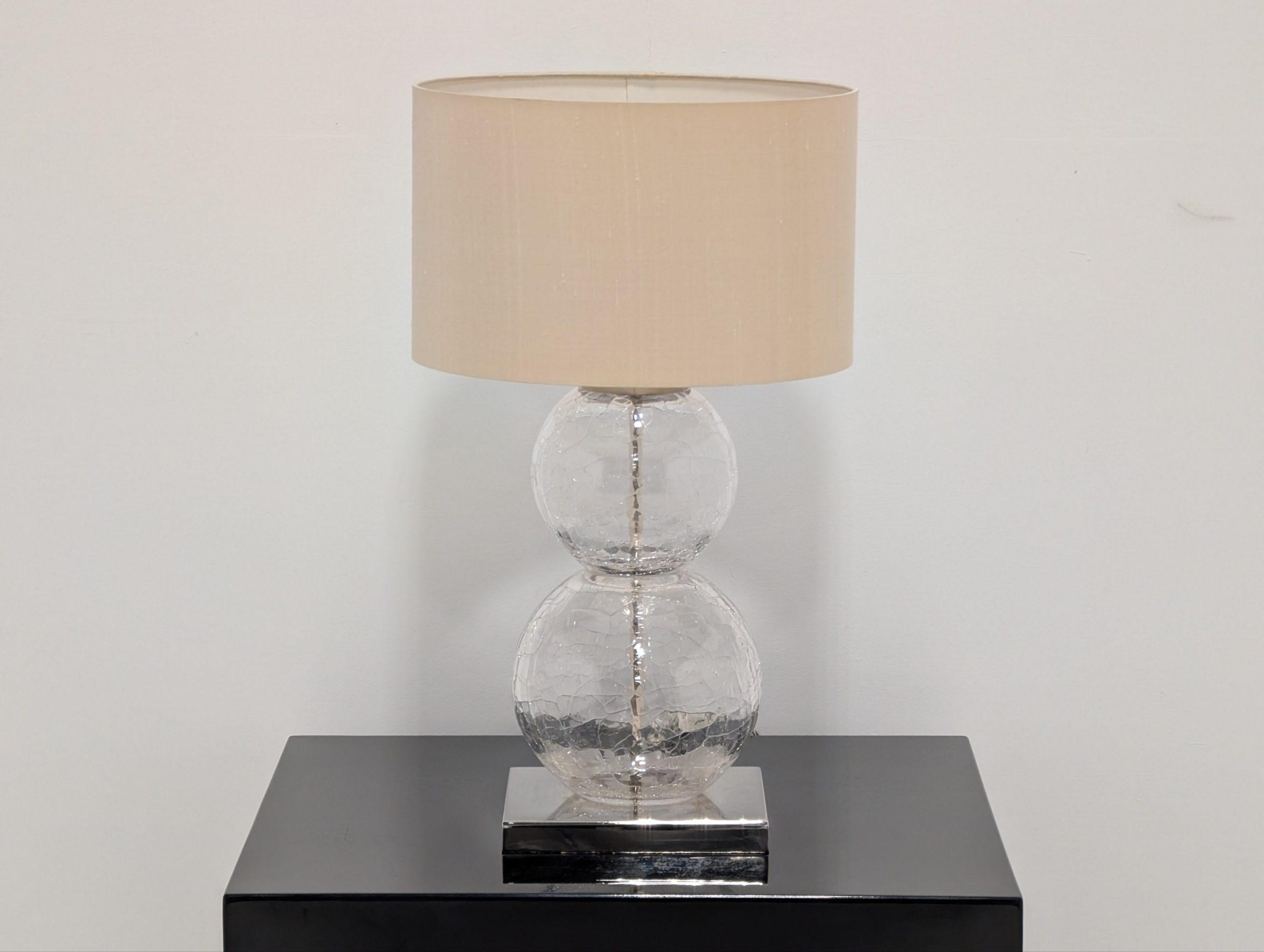 Medium Pasteur Lamp Clear Crackled Glass with Nickel base by Porta Romana Lighting.