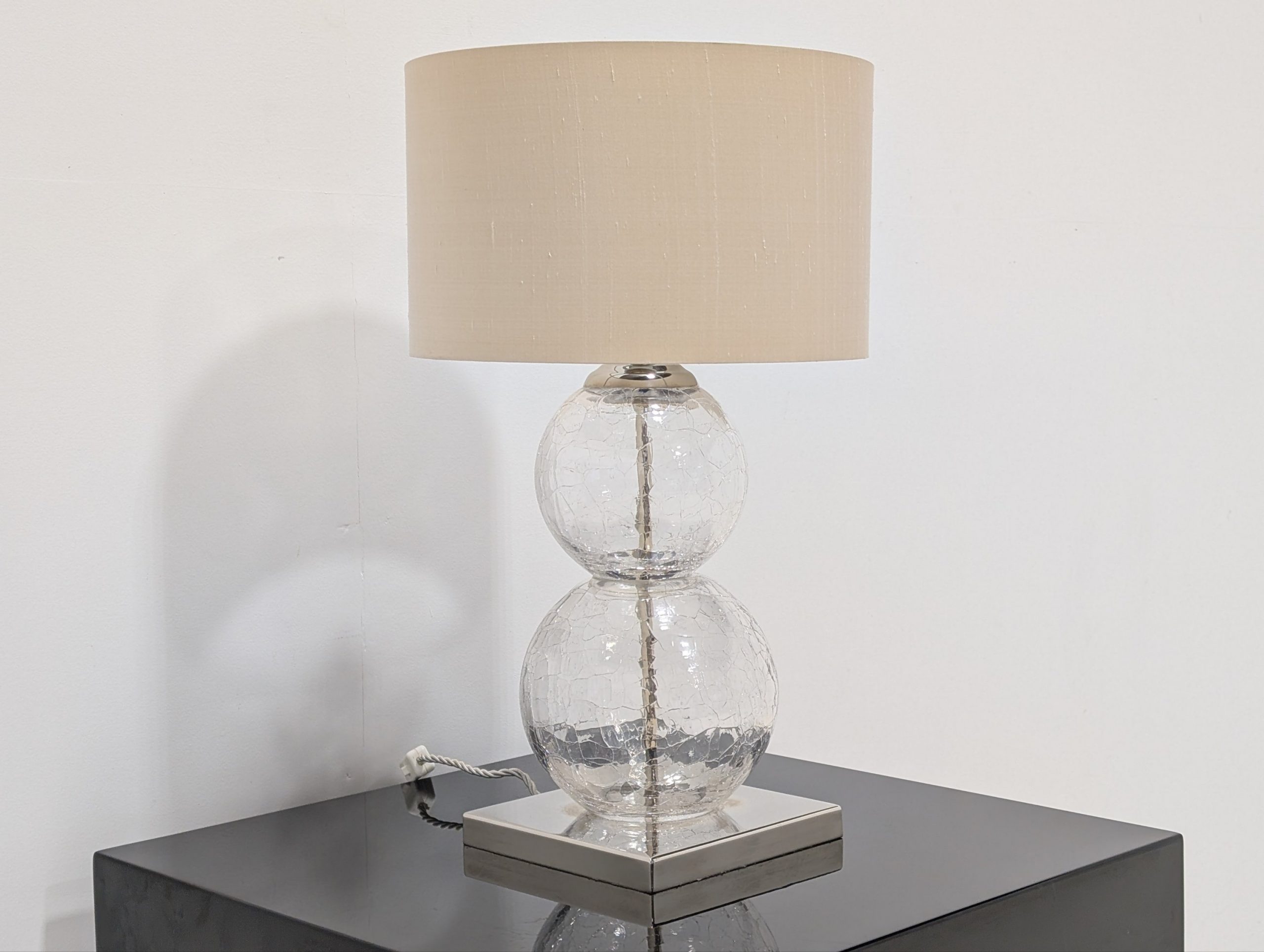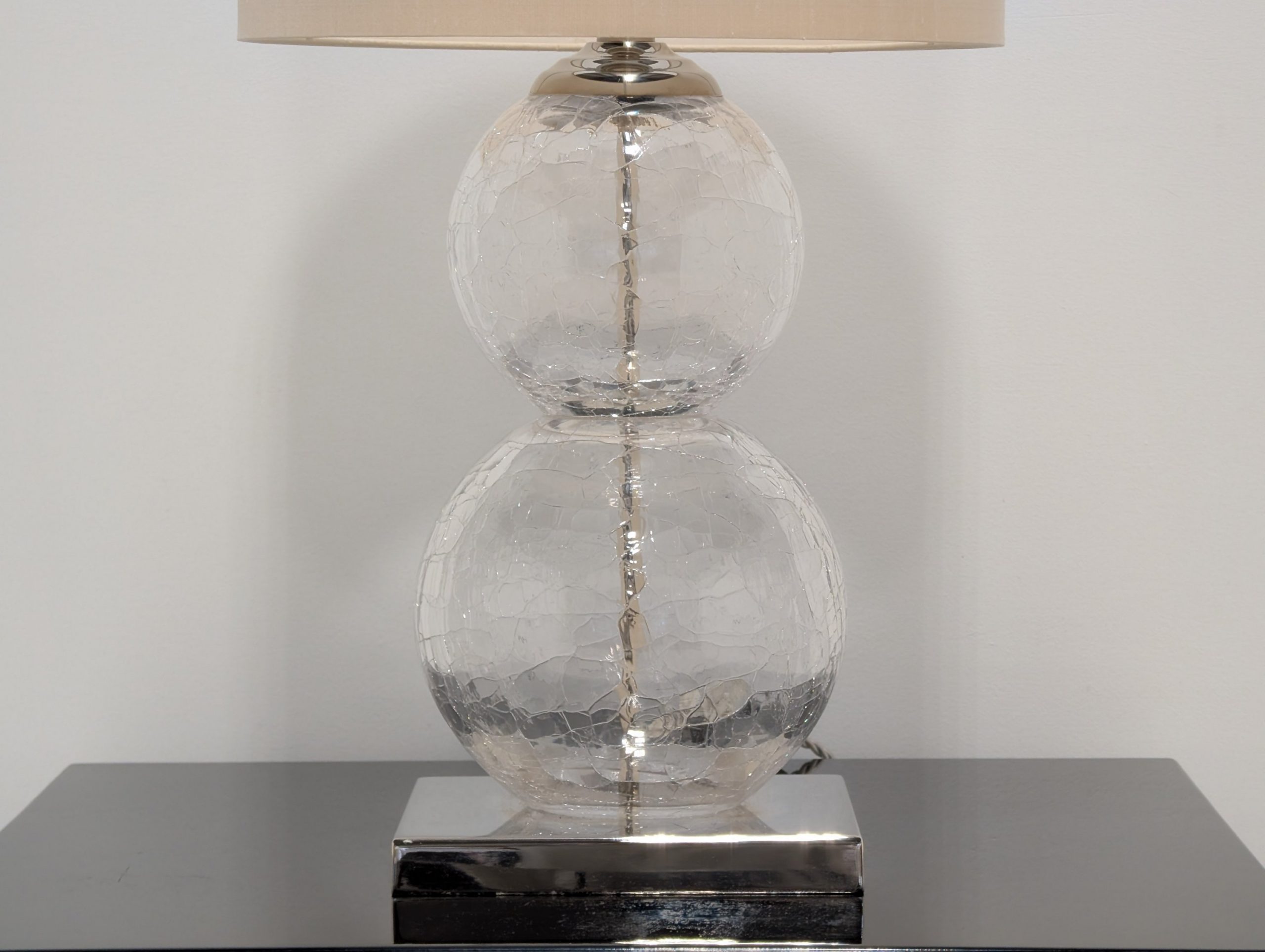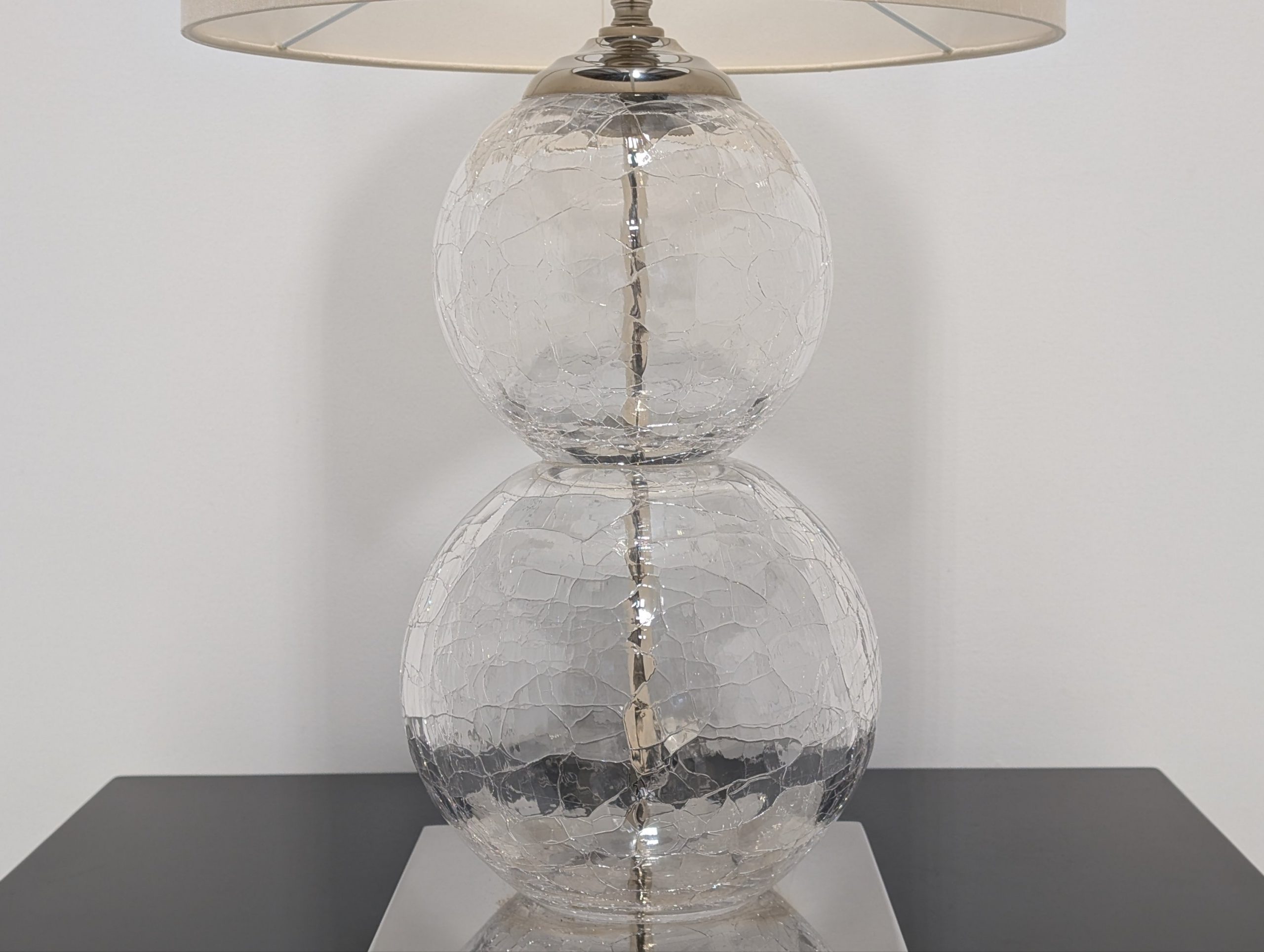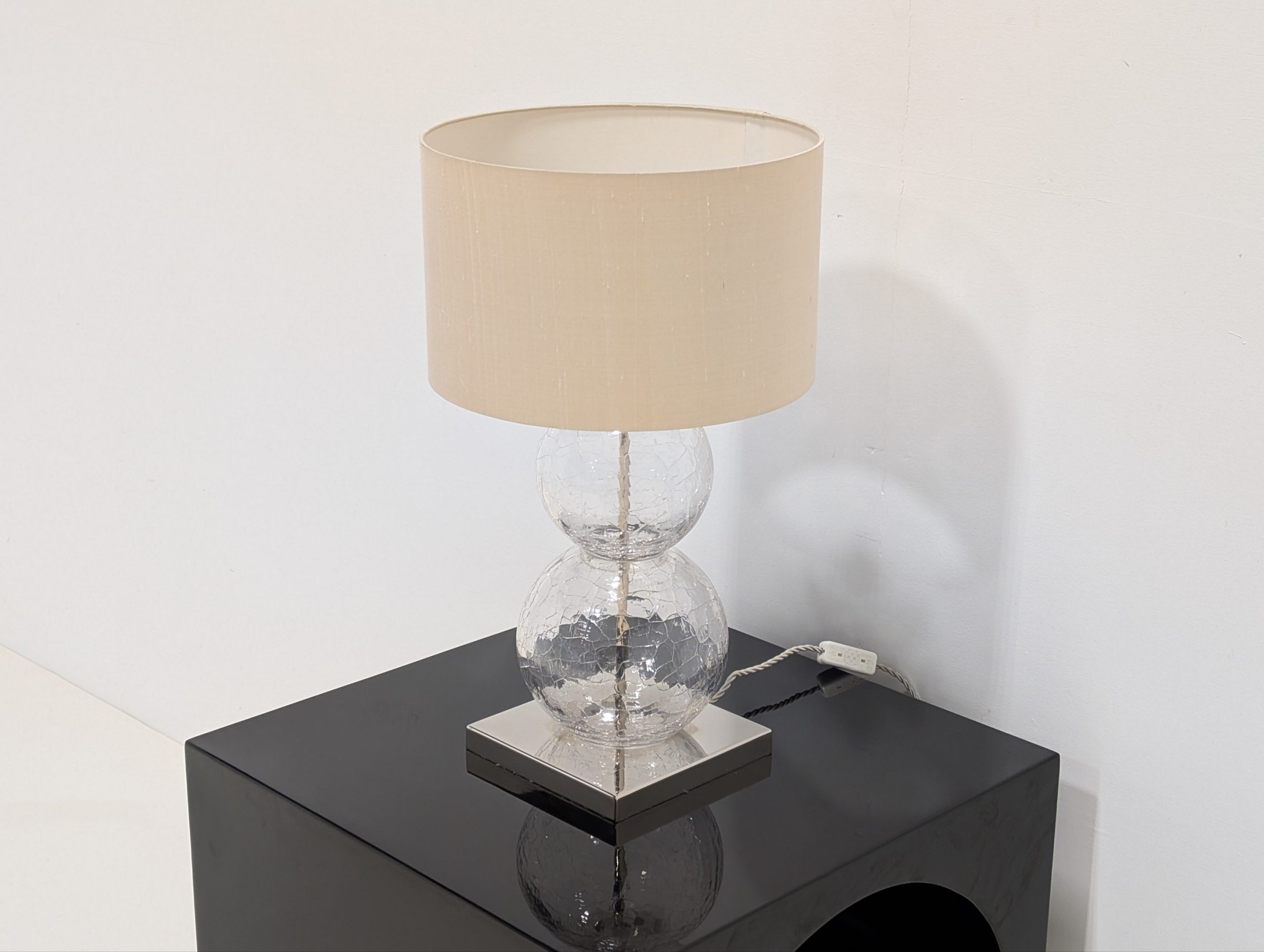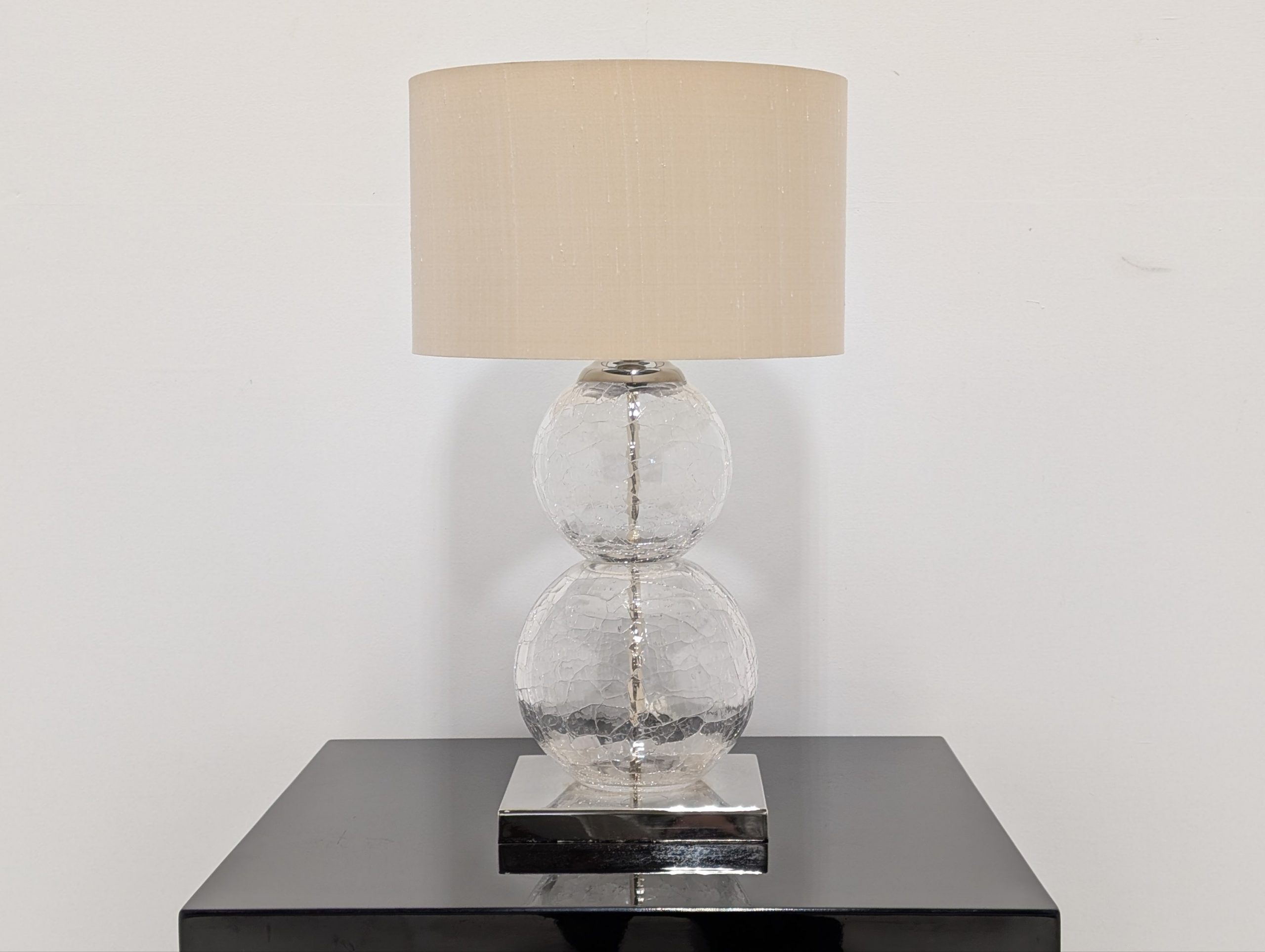 Medium Pasteur Lamp Clear Crackled Glass with Nickel base by Porta Romana Lighting.
